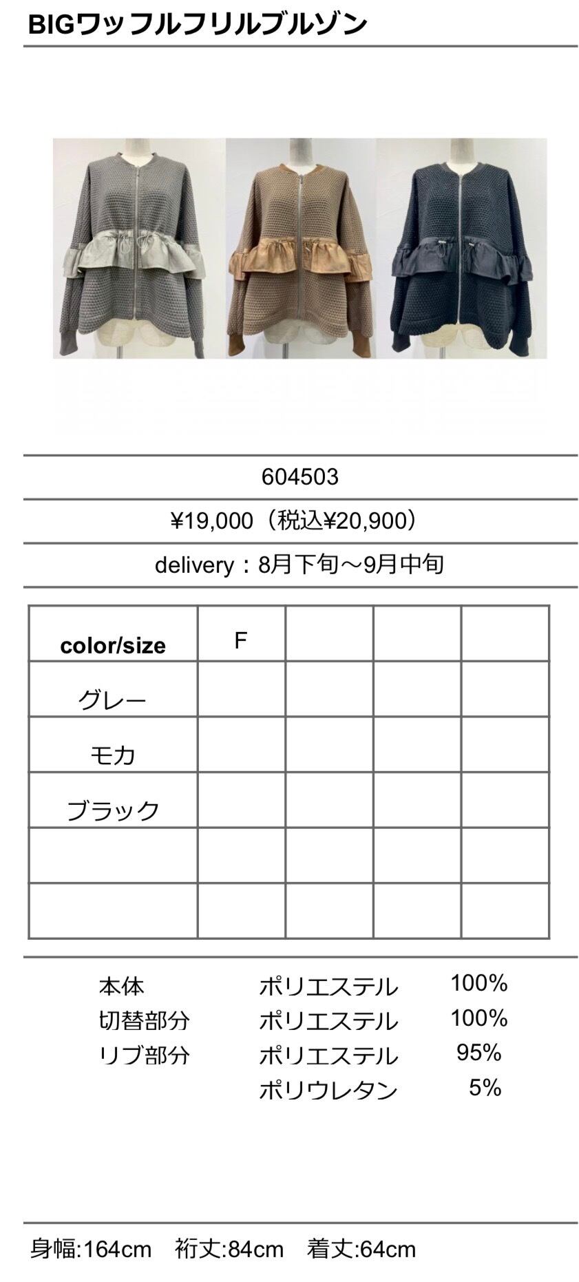 予約販売【 CYAN TOKYO 】BIGワッフルフリルブルゾン (604503) 8月下旬~9月中旬入荷発送予定