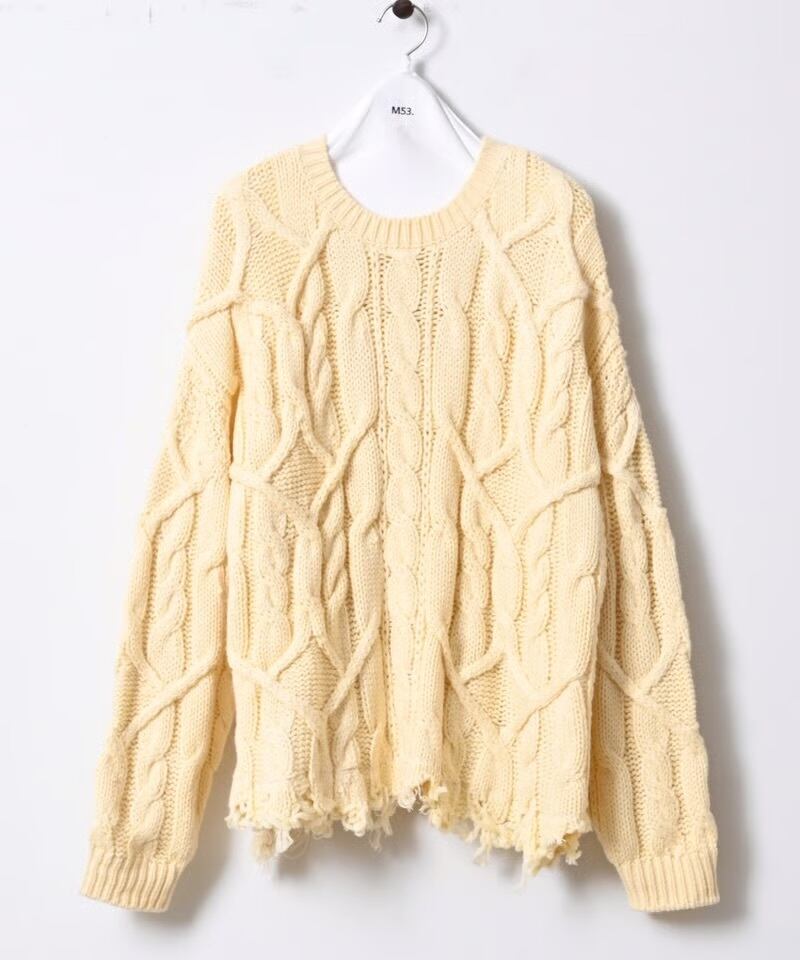 予約販売【 M53. 】クラッシュケーブルニット (MK-038) 8月下旬入荷発送予定