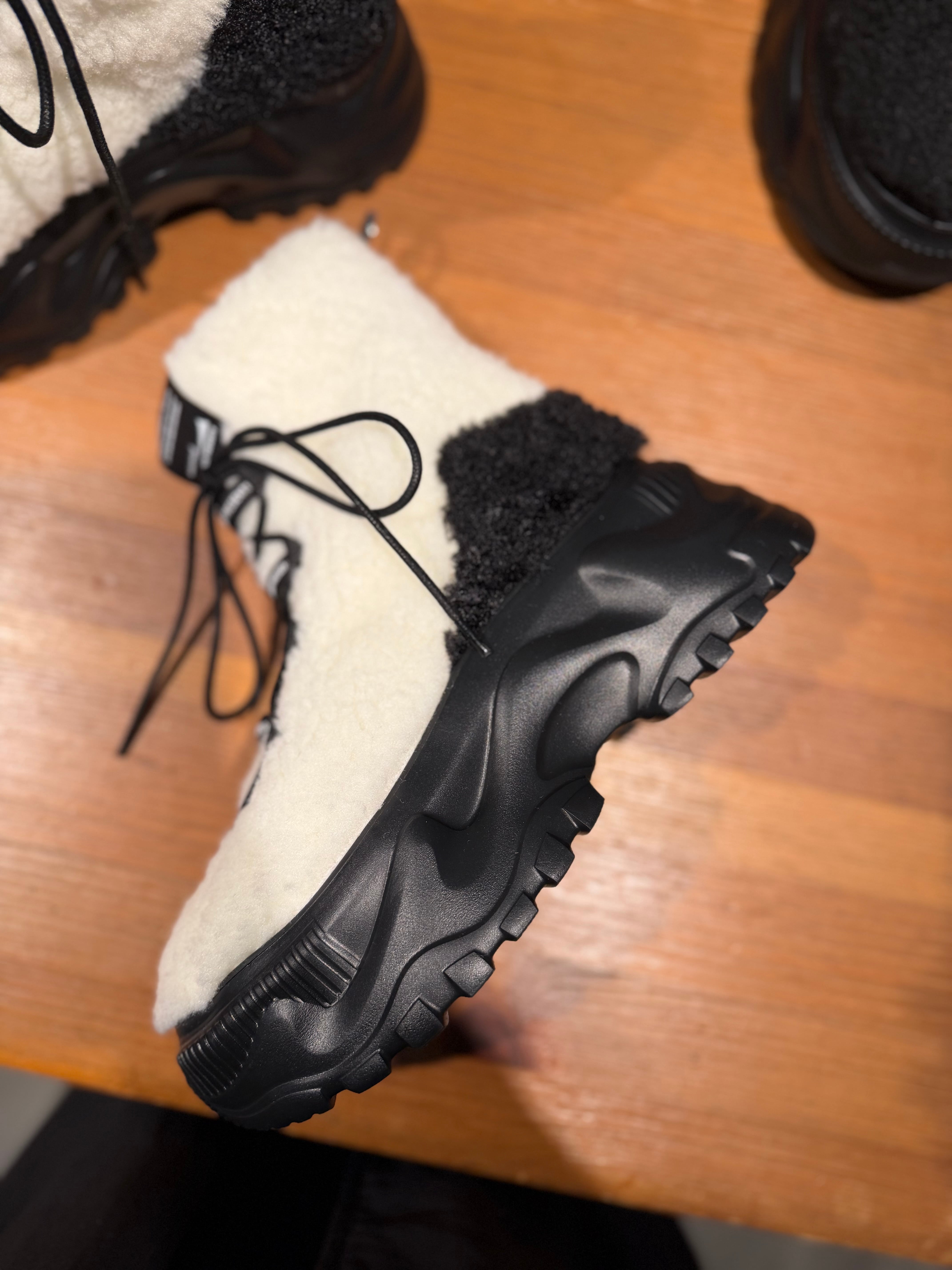 人気のChunky Bootsがボアに覆われた見た目も暖かいショートブーツです。