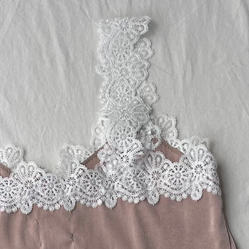 シャツなどを羽織るだけでもサマになる存在感のあるレースキャミソールです。