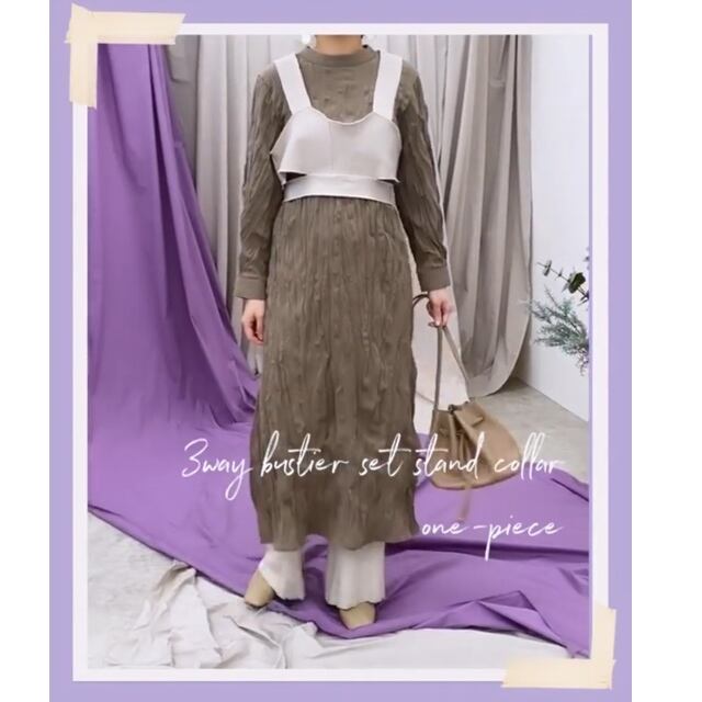 エイミーロウの3WAYビスチェSETスタンドカラーワンピースです