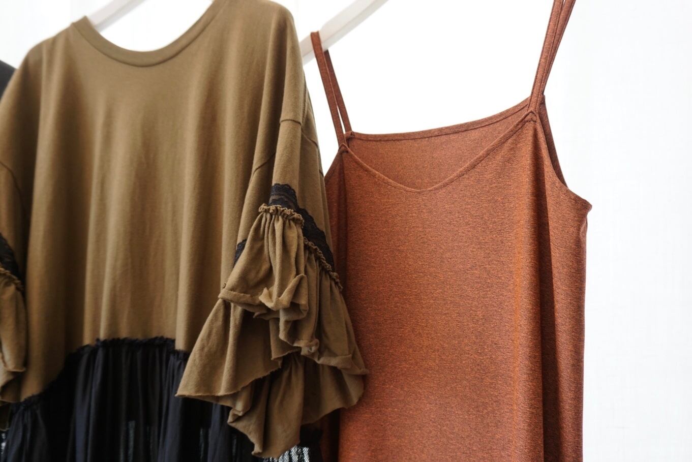 SETのロングキャミソールを合わせて色味を出すもの◎!