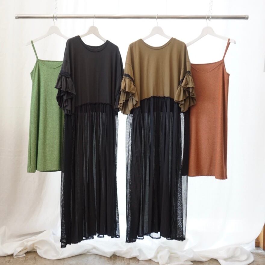【REHERS ALL】 frill sleeve Sheer One Piece (Cami Set) WOP730