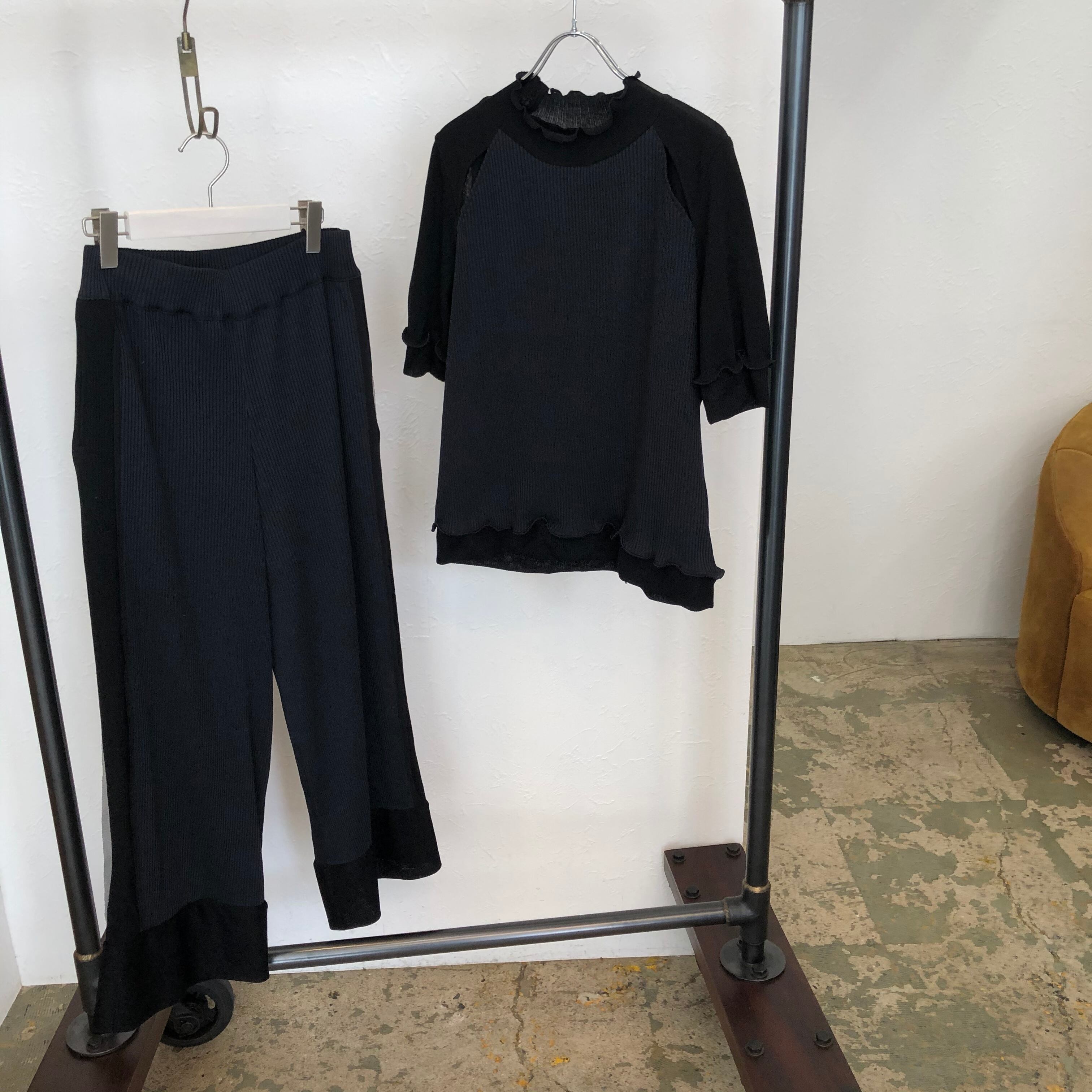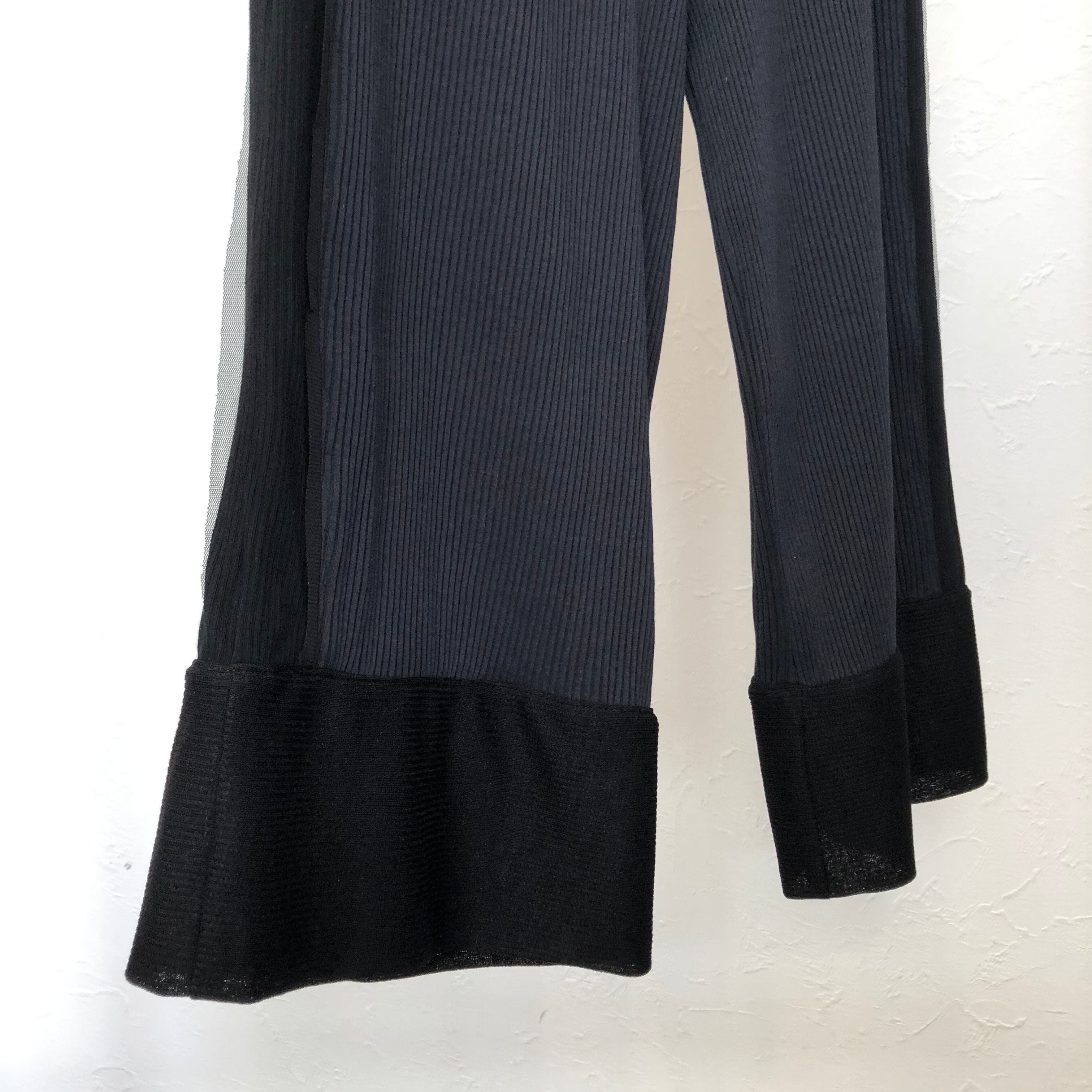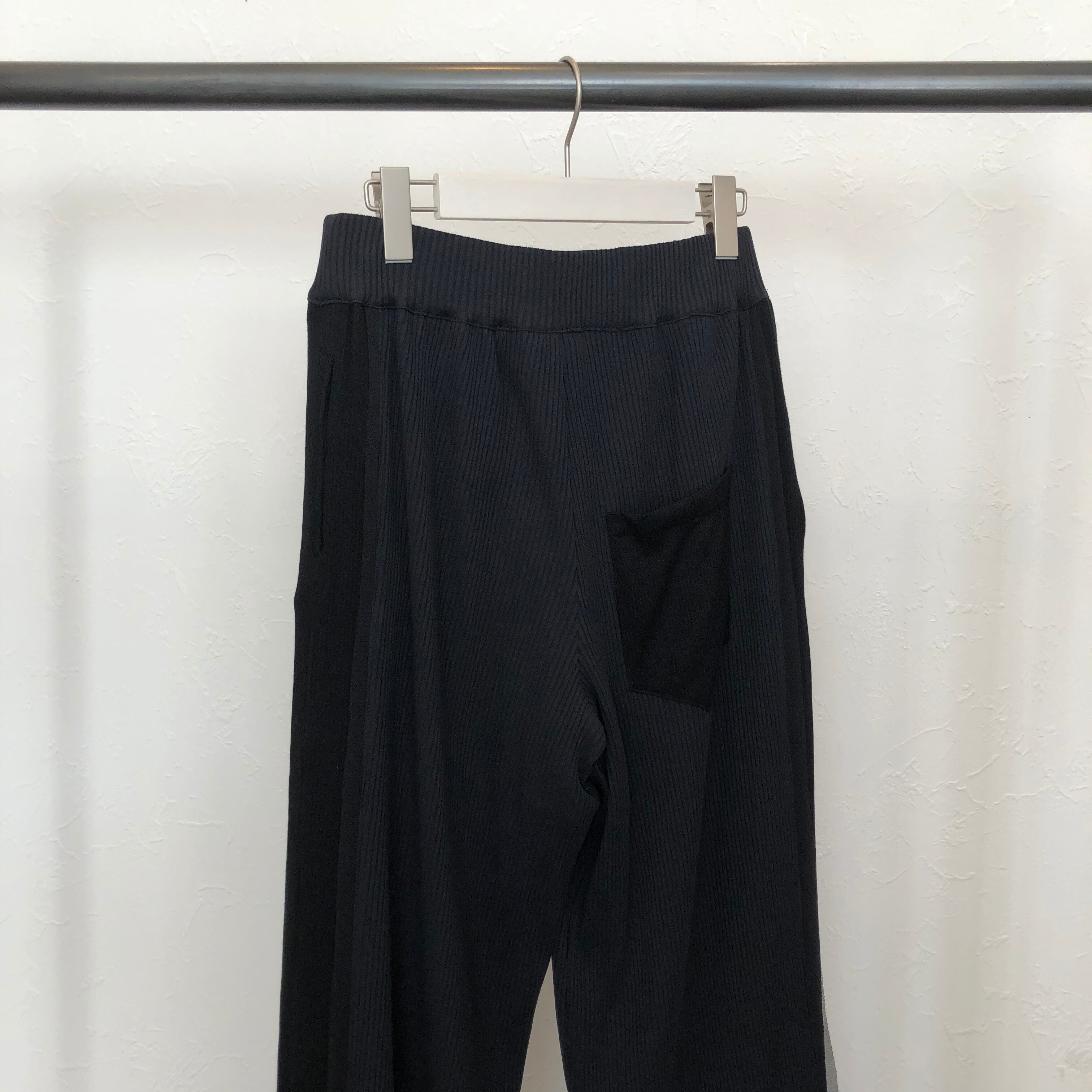2種類のリブ素材をかけあわせて、パンツにしています。