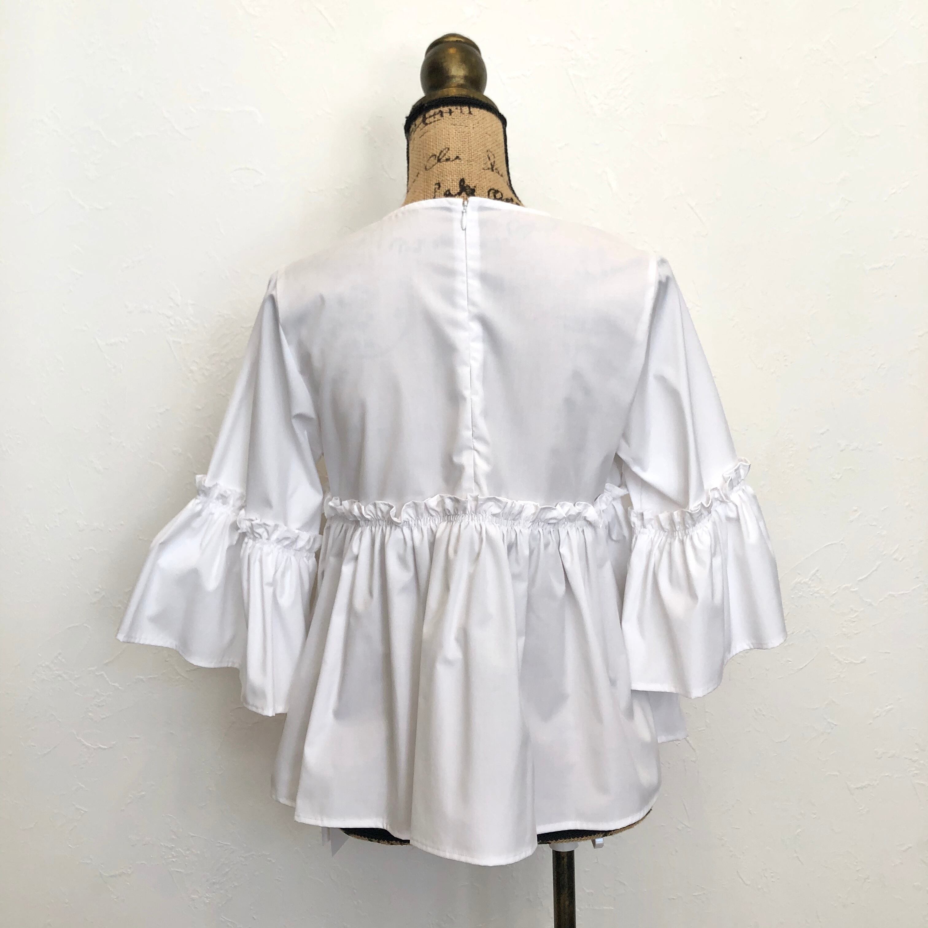 トーマスマグパイのシャツ生地フリルプルオーバーです