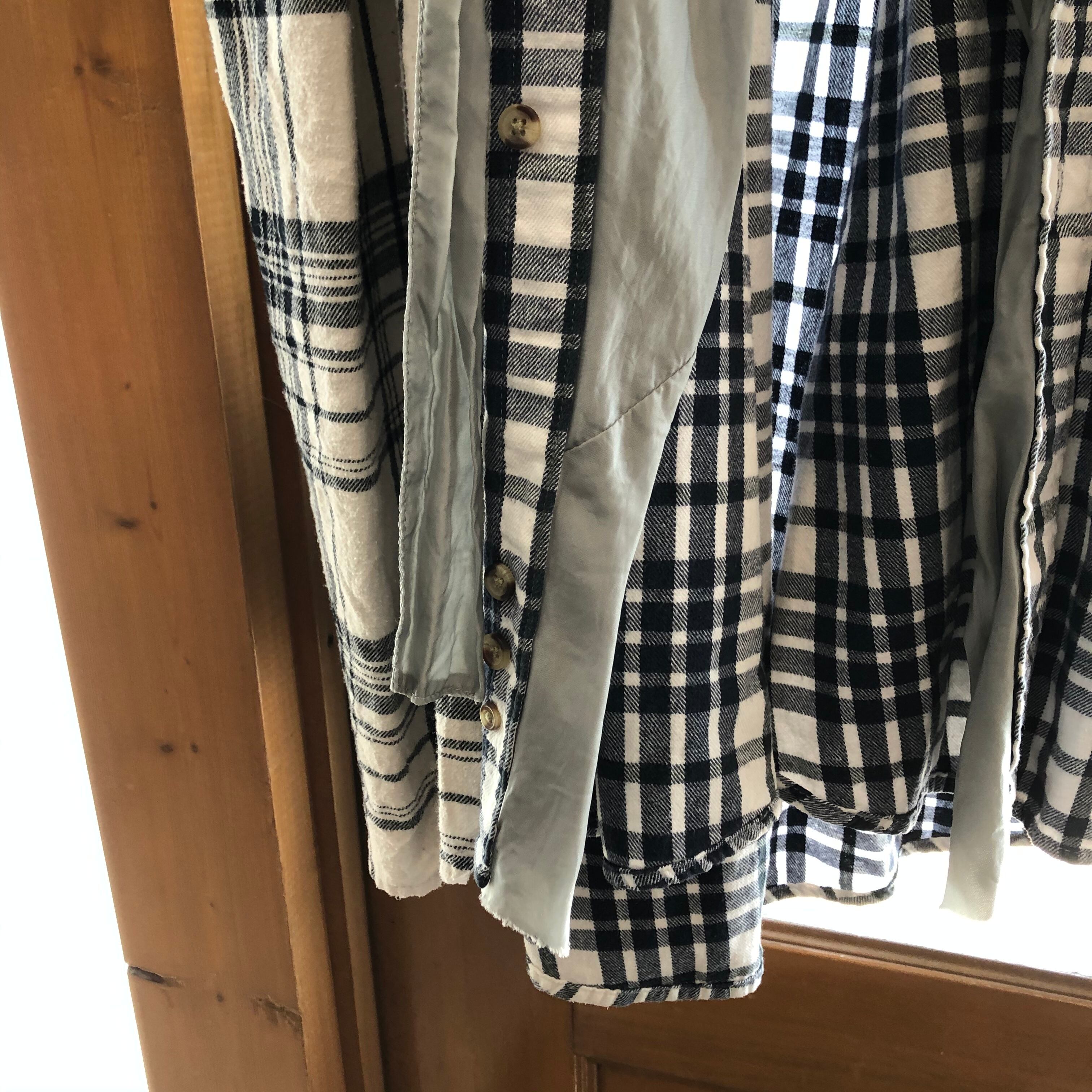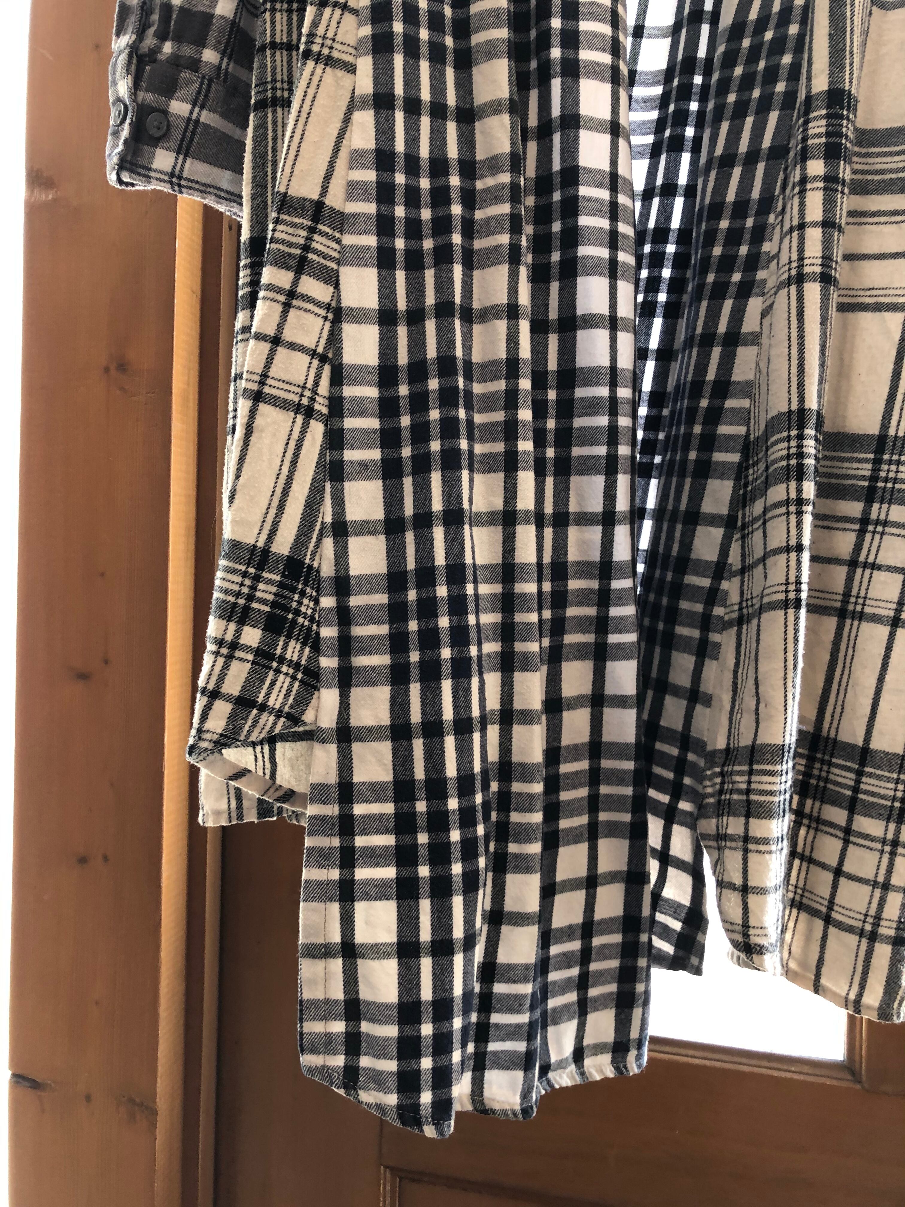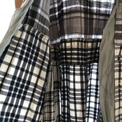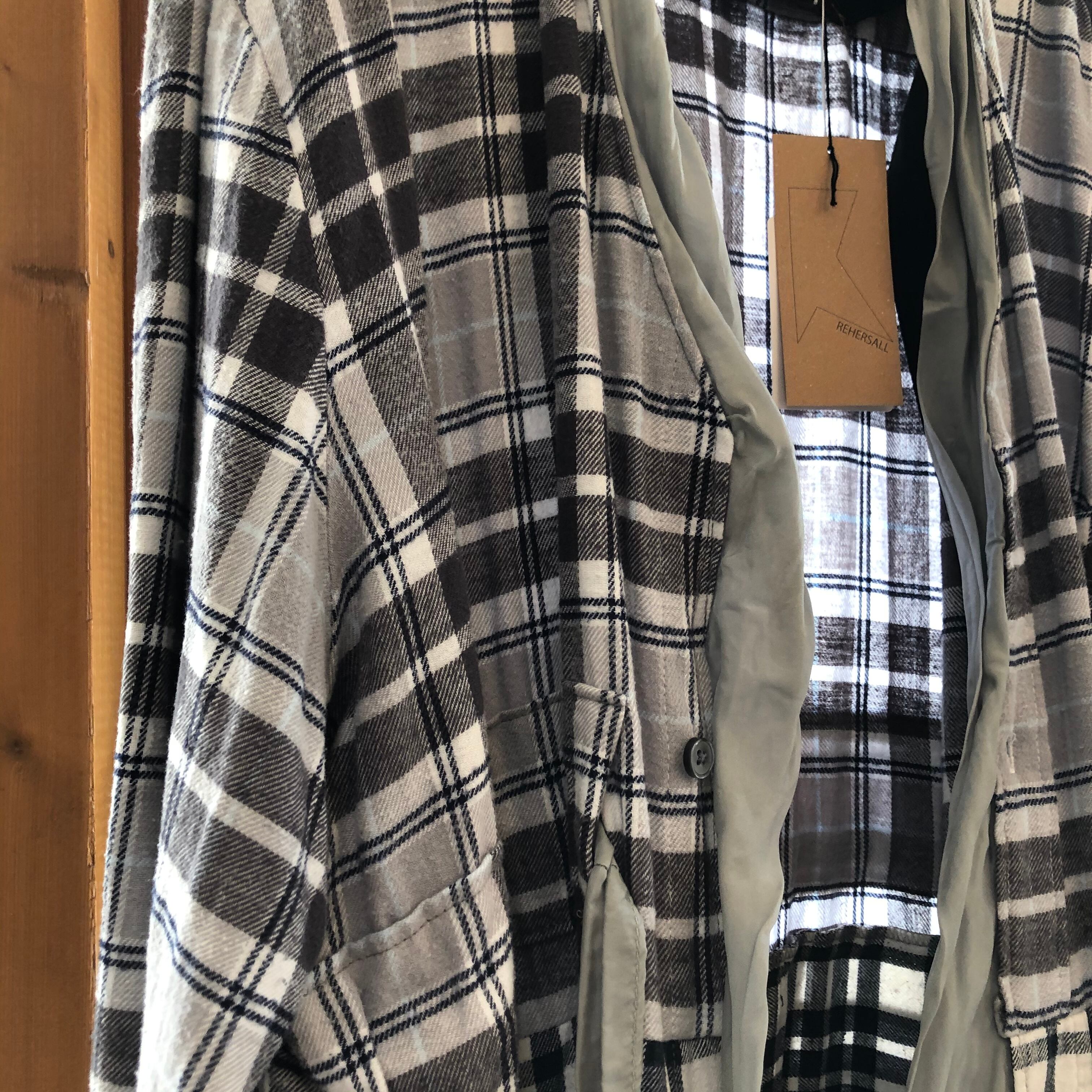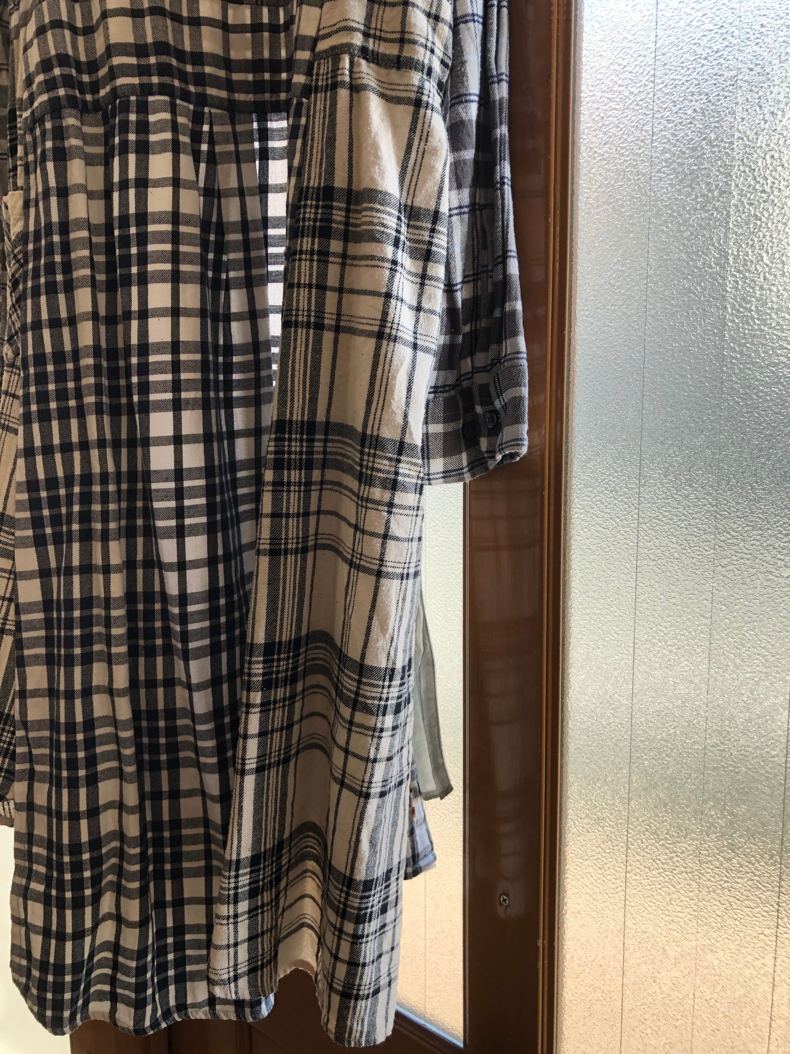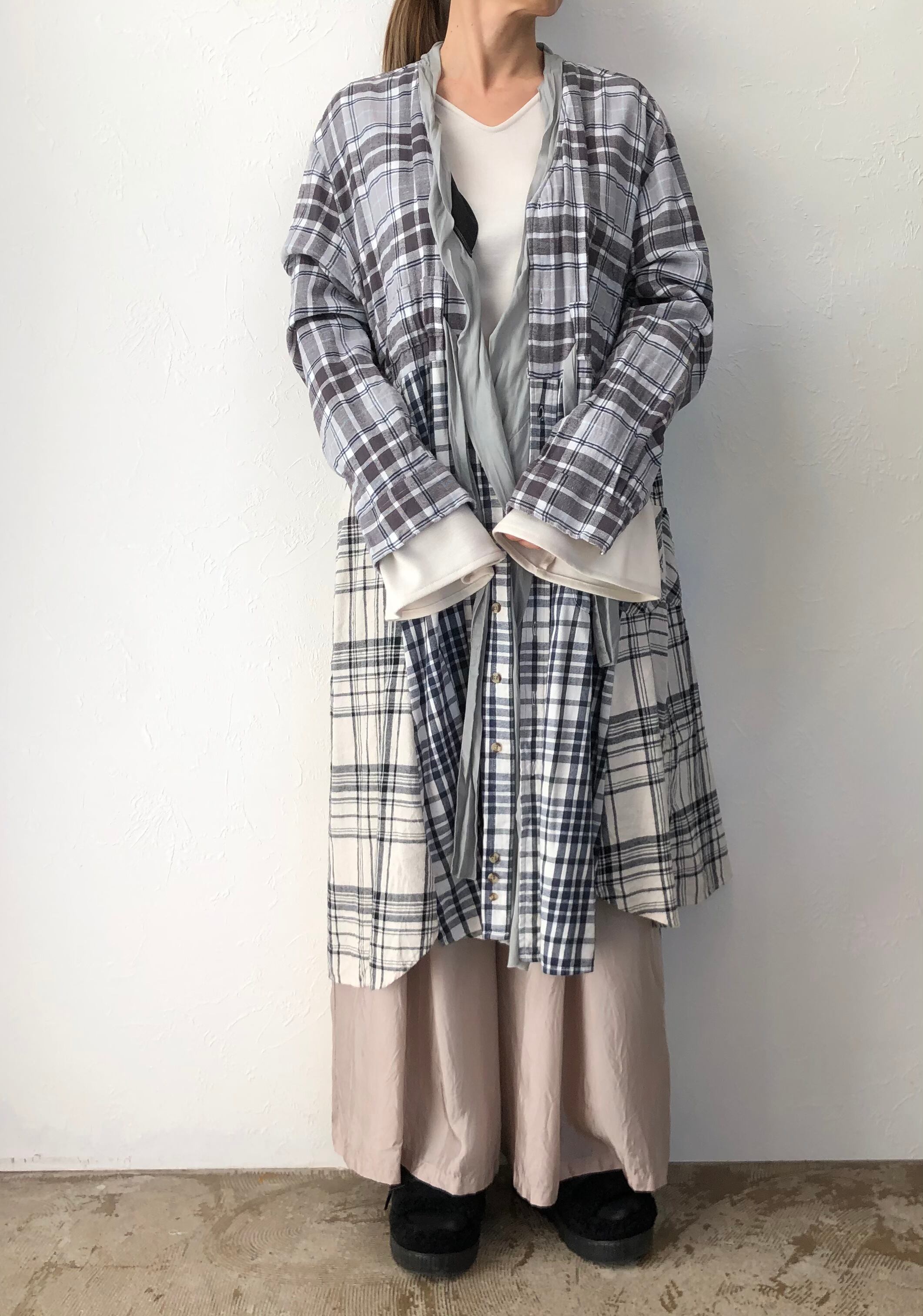 ユーズドのチェックネルシャツをパッチワークした一点物ガウン。
