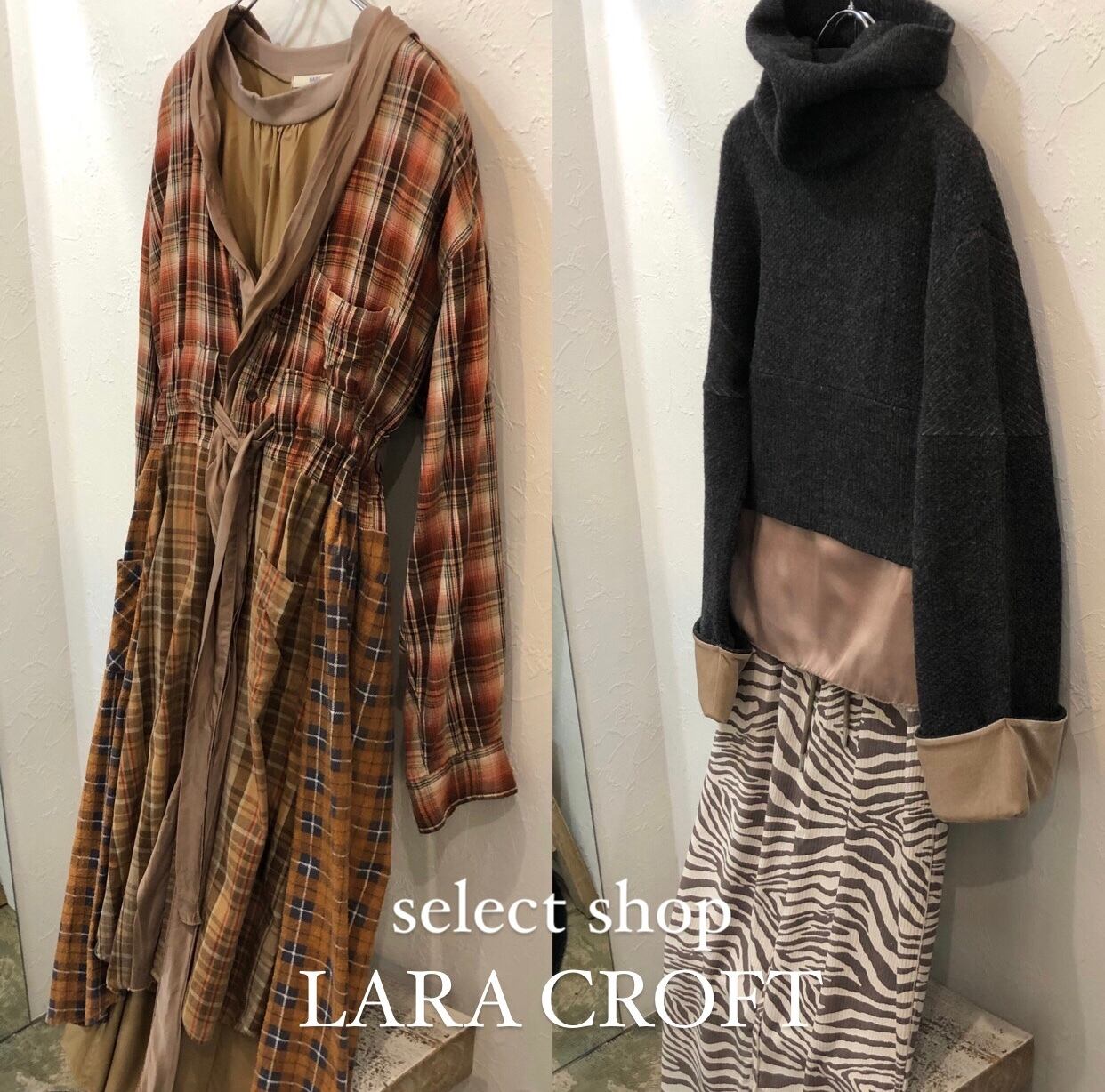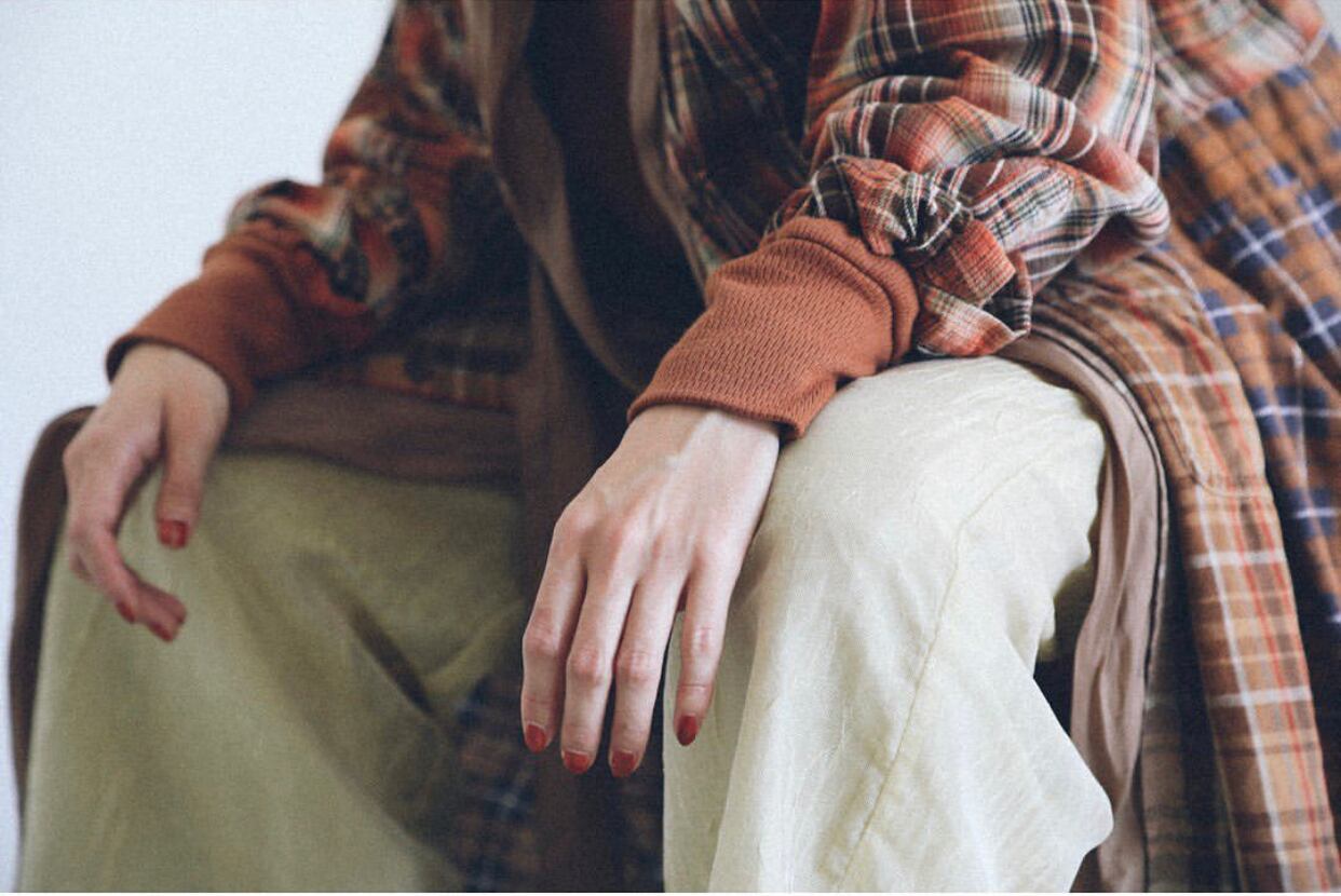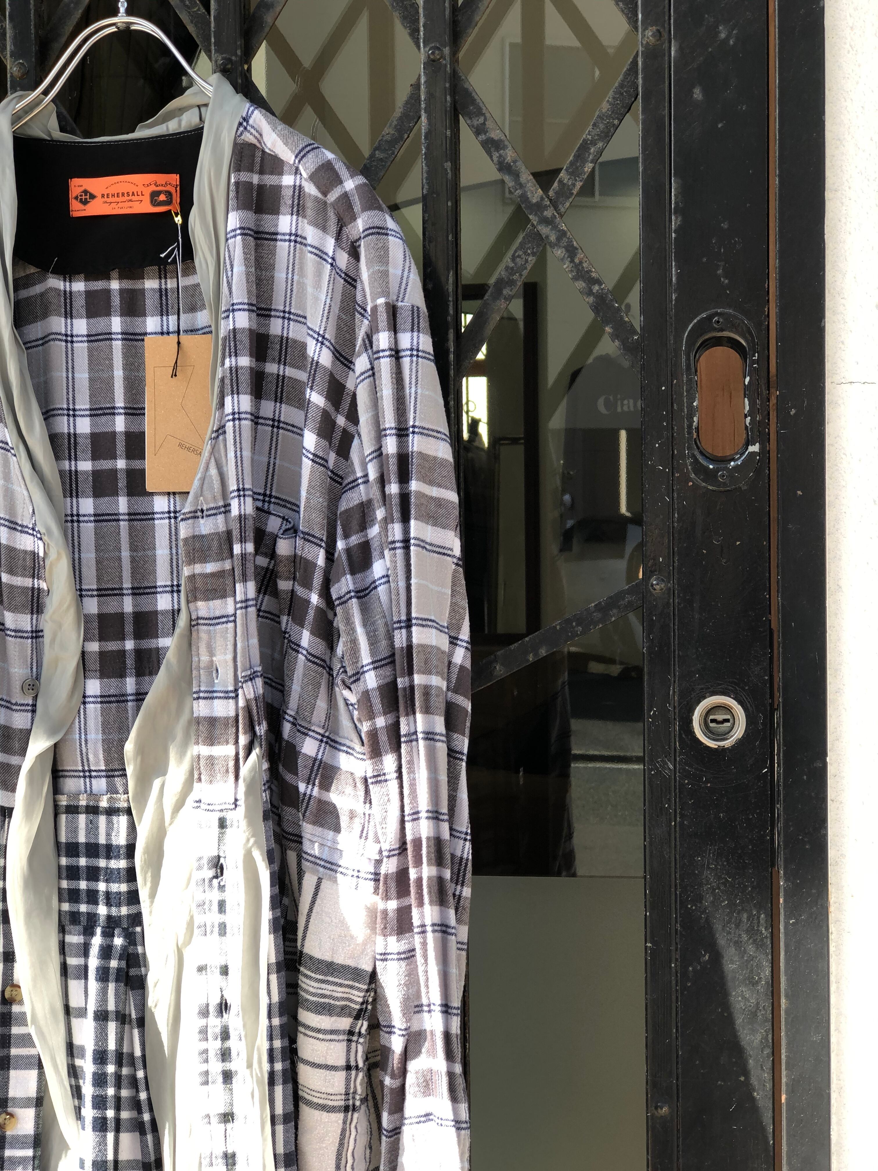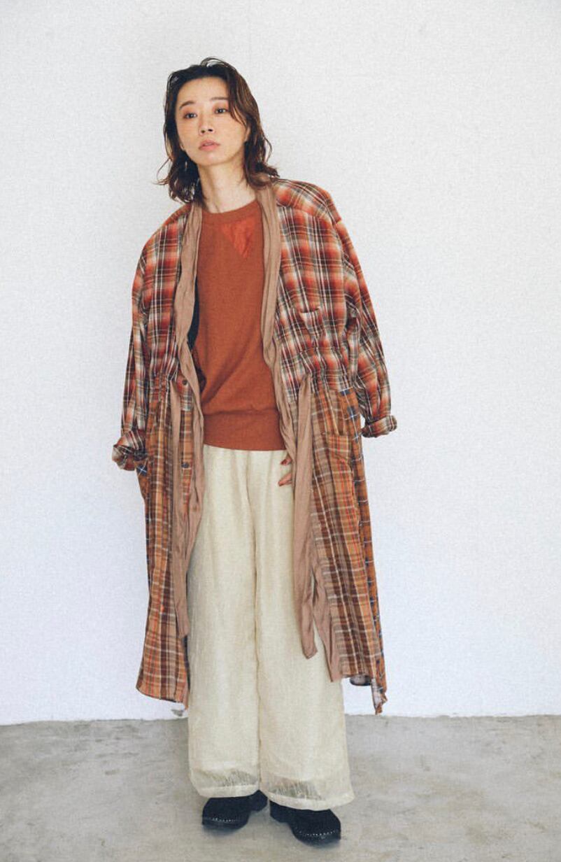 リハーズオールよりユーズドのチェックネルシャツをパッチワークした一点物のガウン。