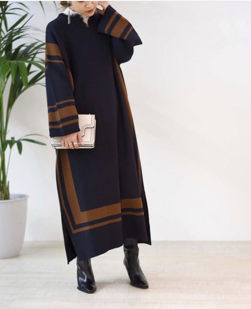身体が泳ぐゆったりとしたシルエットでリラックス感&きちんと感が叶うニットワンピース。