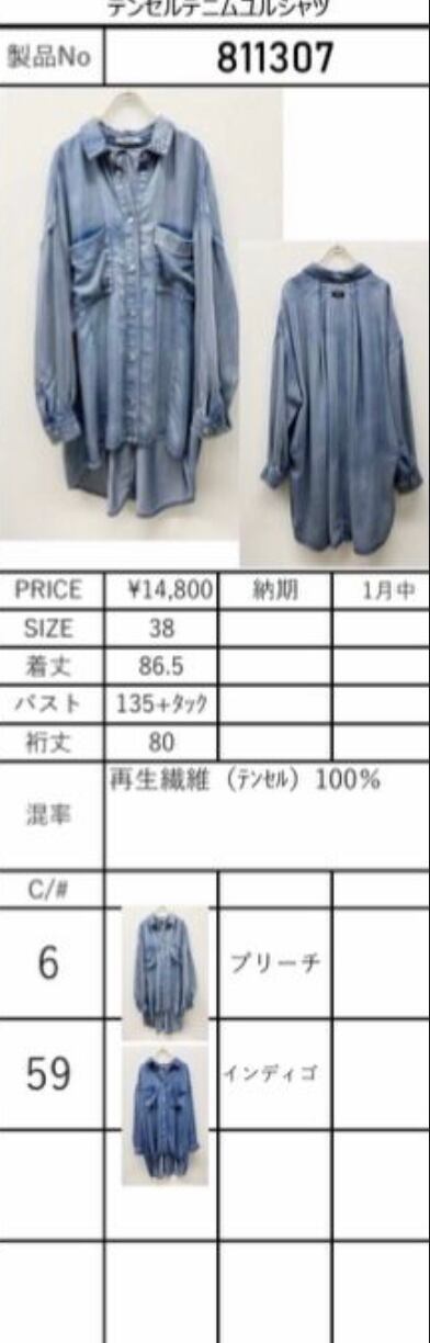アヤン2021s テンセルデニムデニムゆるシャツ