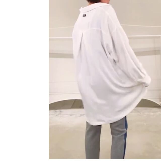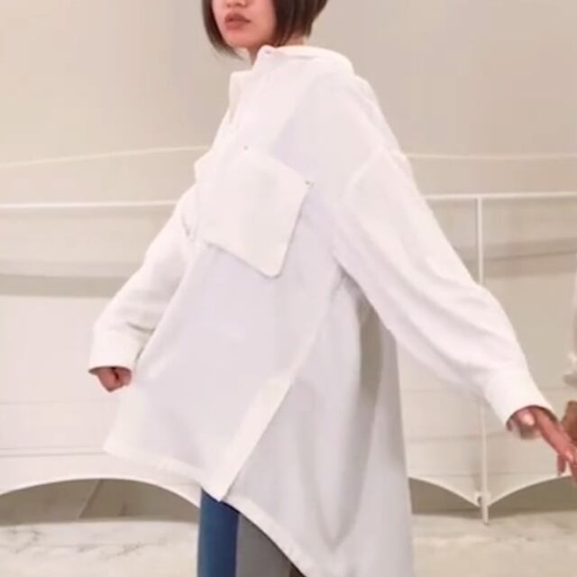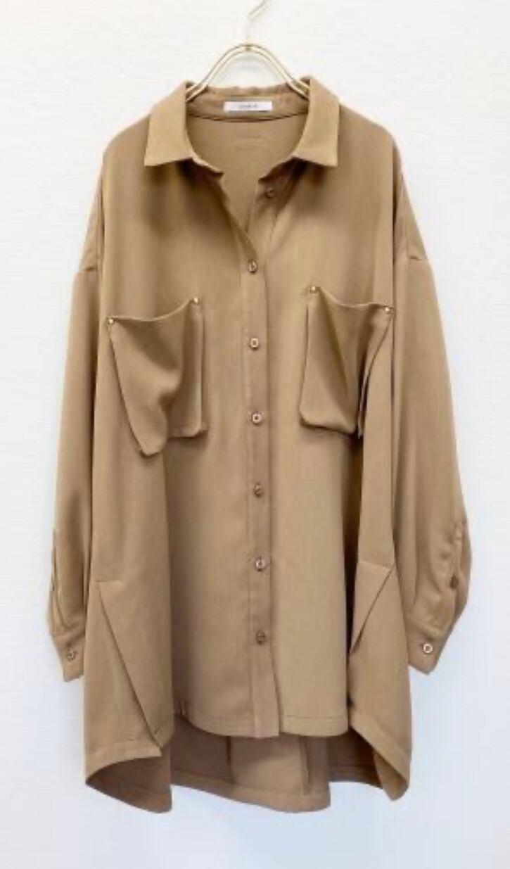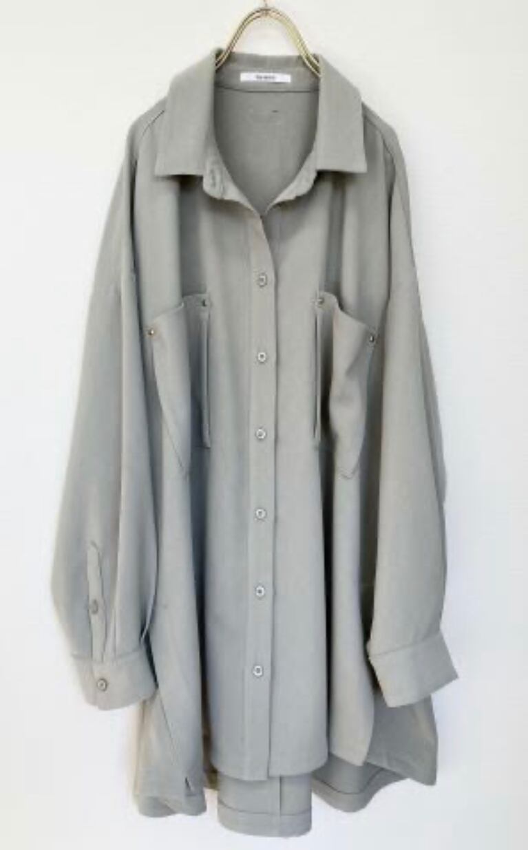 ポリエステル素材で落ち感があり、かなりゆったりめですがスッキリとしたシルエット◎