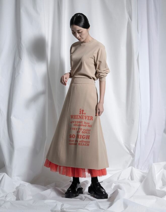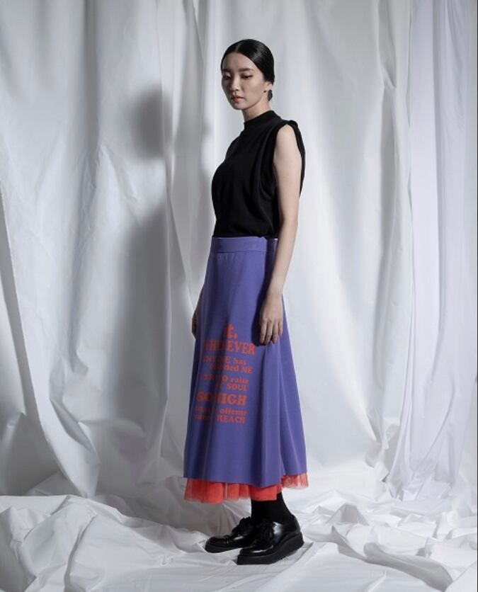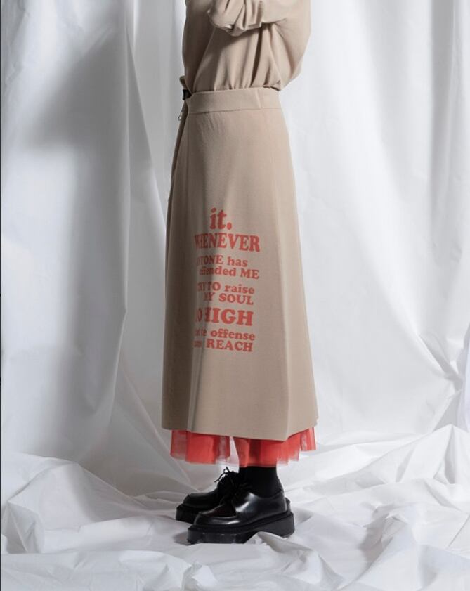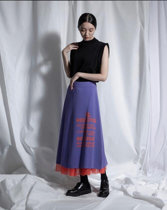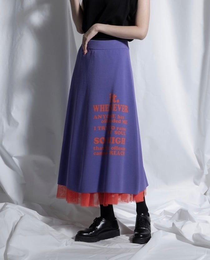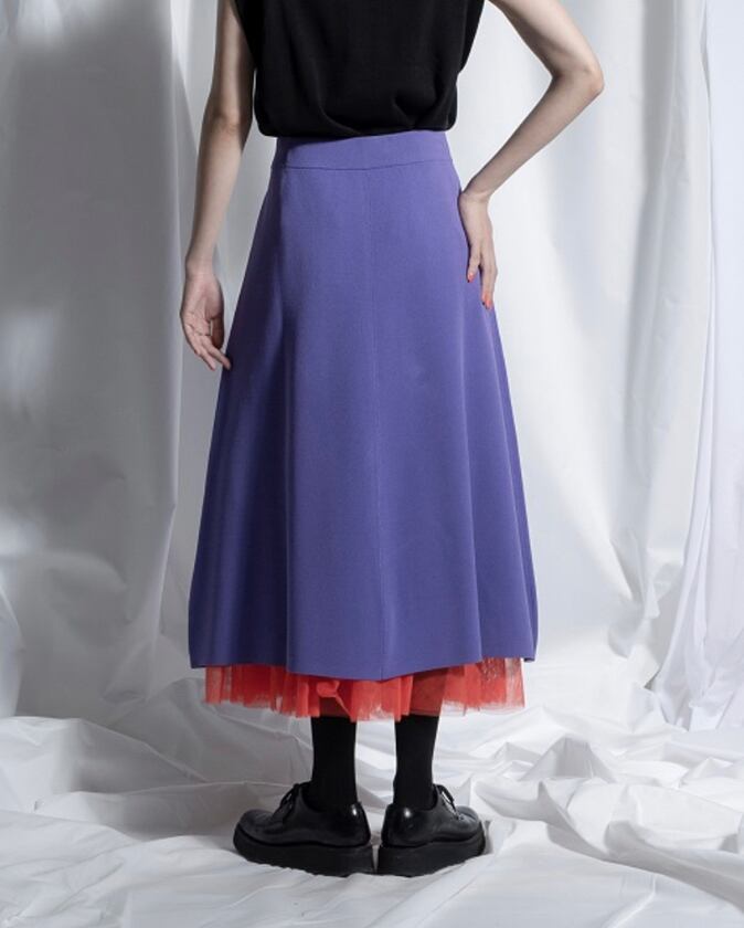 写真で着用しているニットスカートの下に履いているチュールスカートは別売りです。(3月販売予定)