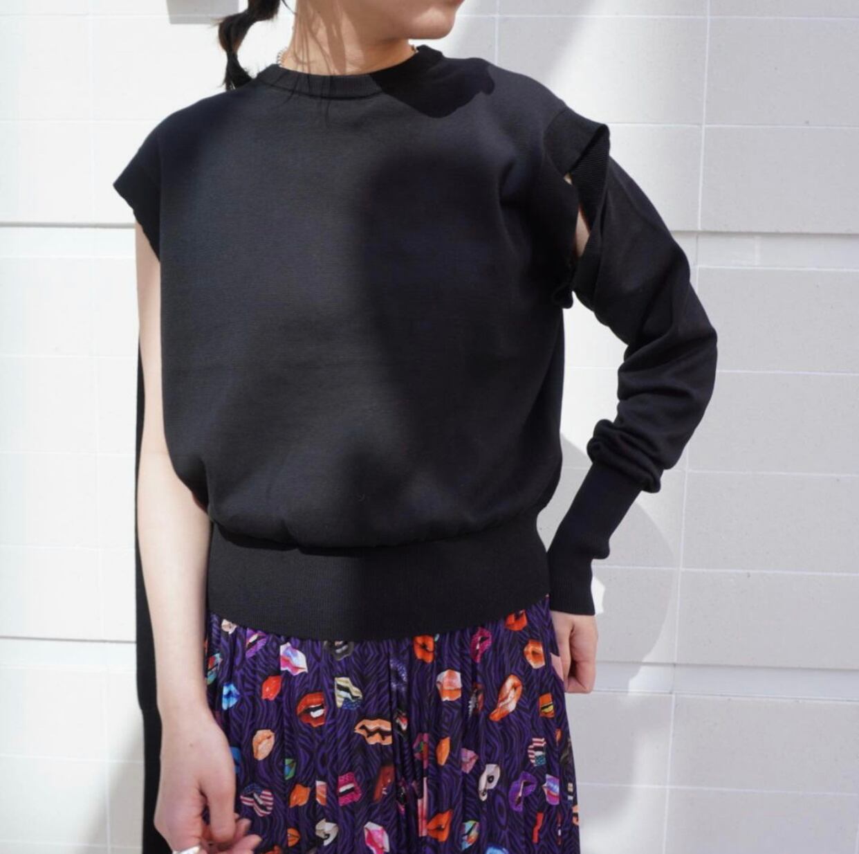 ノースリーブとロングスリーブの2WAYニット