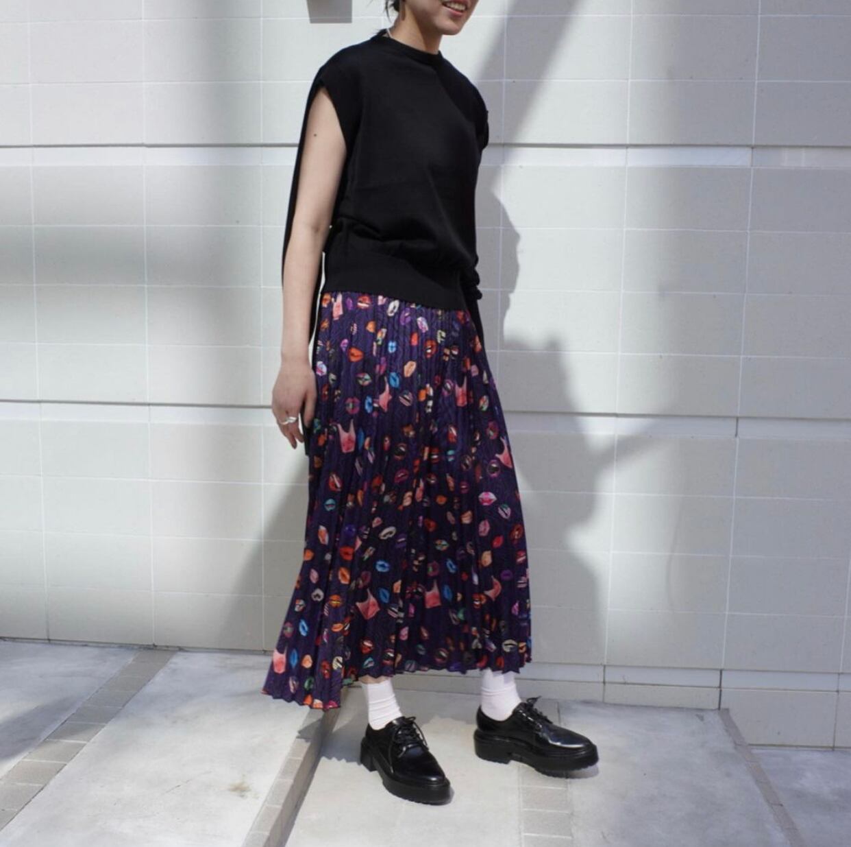 このニットは、1stサンプルを作った後にそのサンプルを切り刻みながらより具体的なイメージに近づけていきます。ニットもテキスタイルの物と同じ様に2つの着回し方法ができる物、より楽しくなる物が出来ないかを考える事が出来る様になりました。