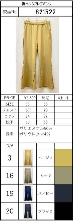 裾ベンツフレアパンツ ___821522