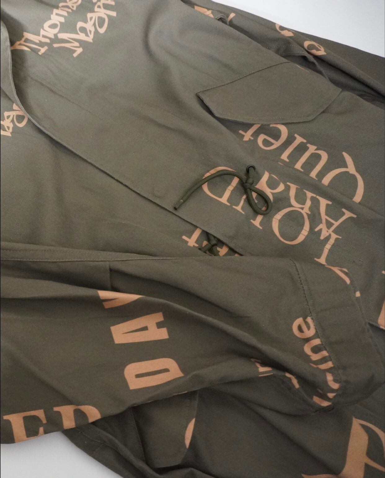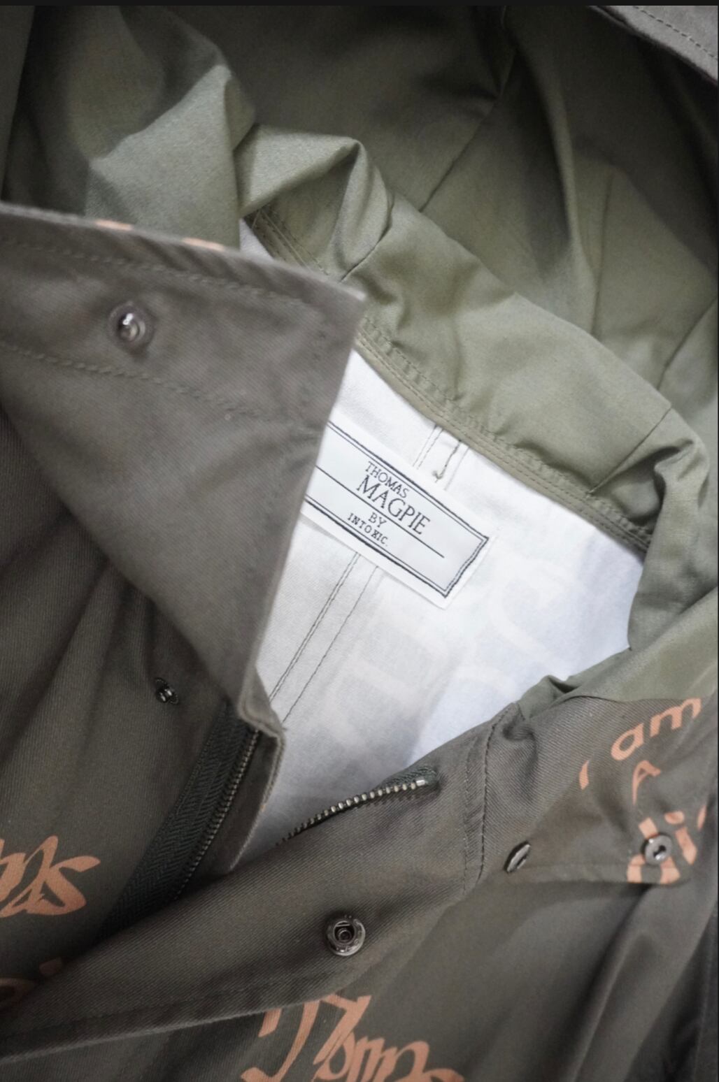 コットン100%で軽くて羽織りやすいアイテムで、寒い日にはアウターの上から着てもらいたいと思います。元々スノーパーカーは、アウターの上から着るアイテムで雪の中で隠れる為に真っ白で作られていたそうです。