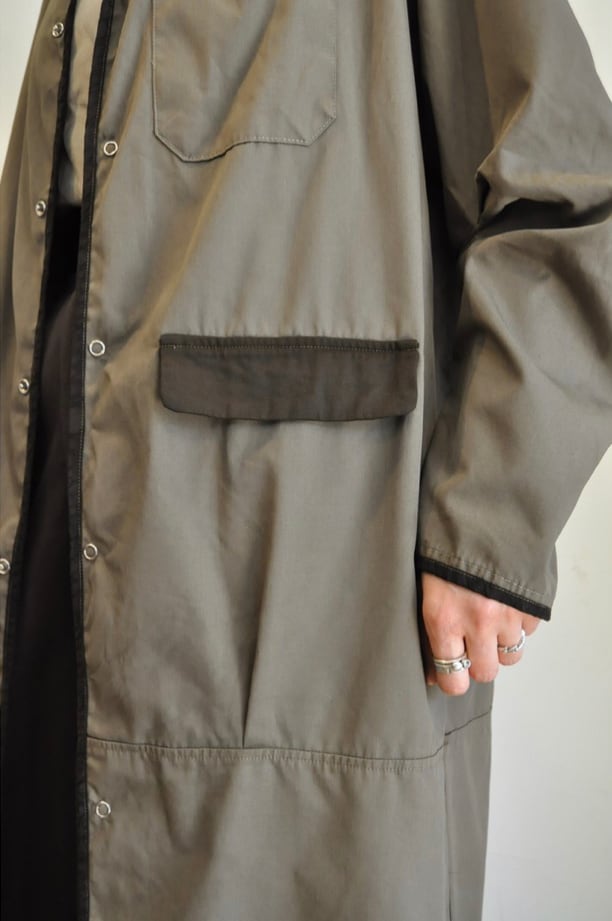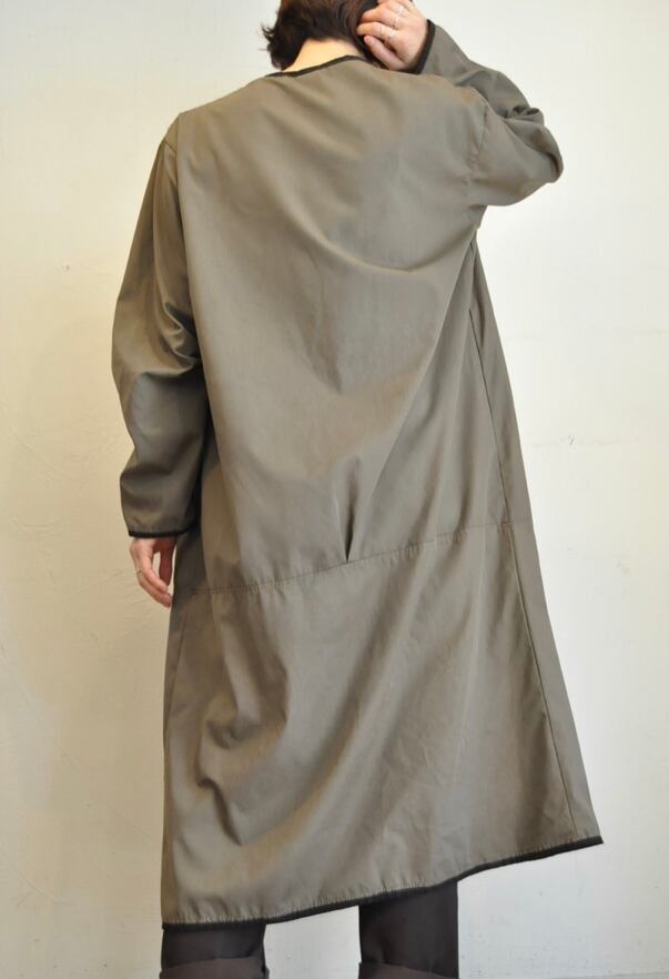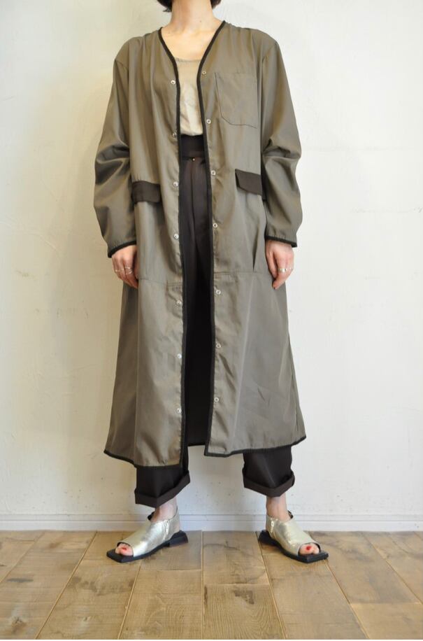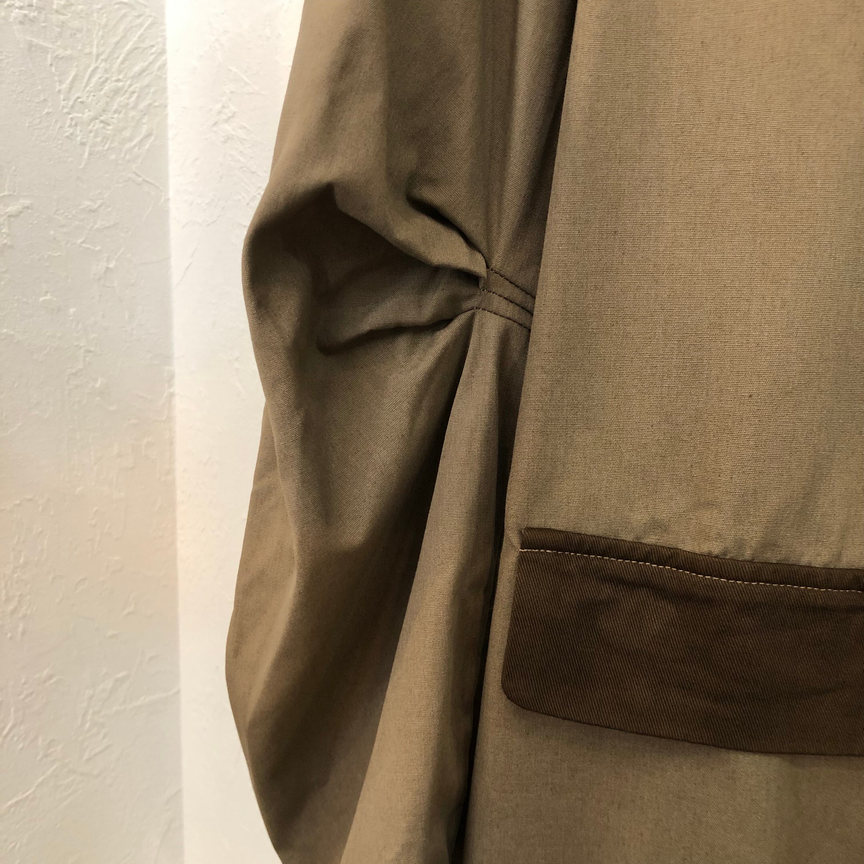 ジャガード生地でトリミングし、タックでゆったりとしたシルエットになっています。
