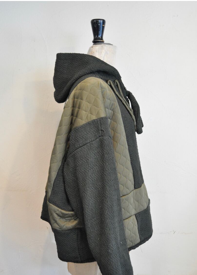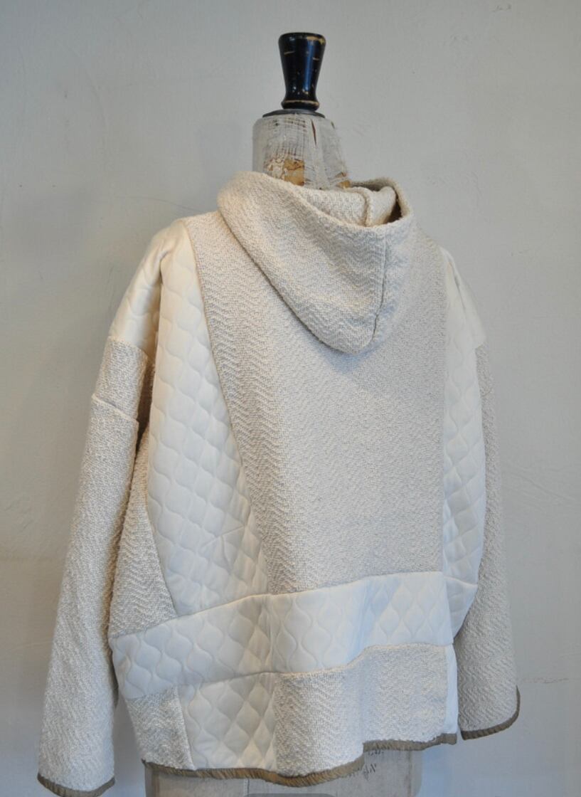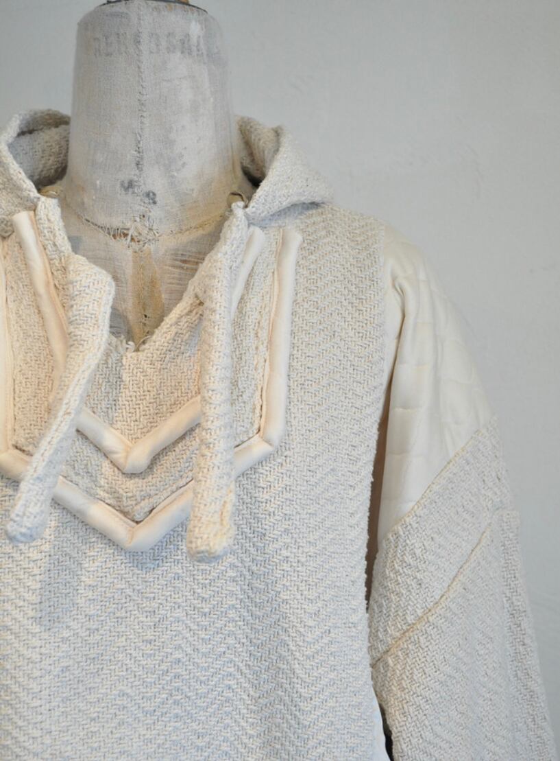 デッドストックのホワイトメキシカンパーカーに柔らかいキルティングを掛け合わせたプルオーバータイプ。