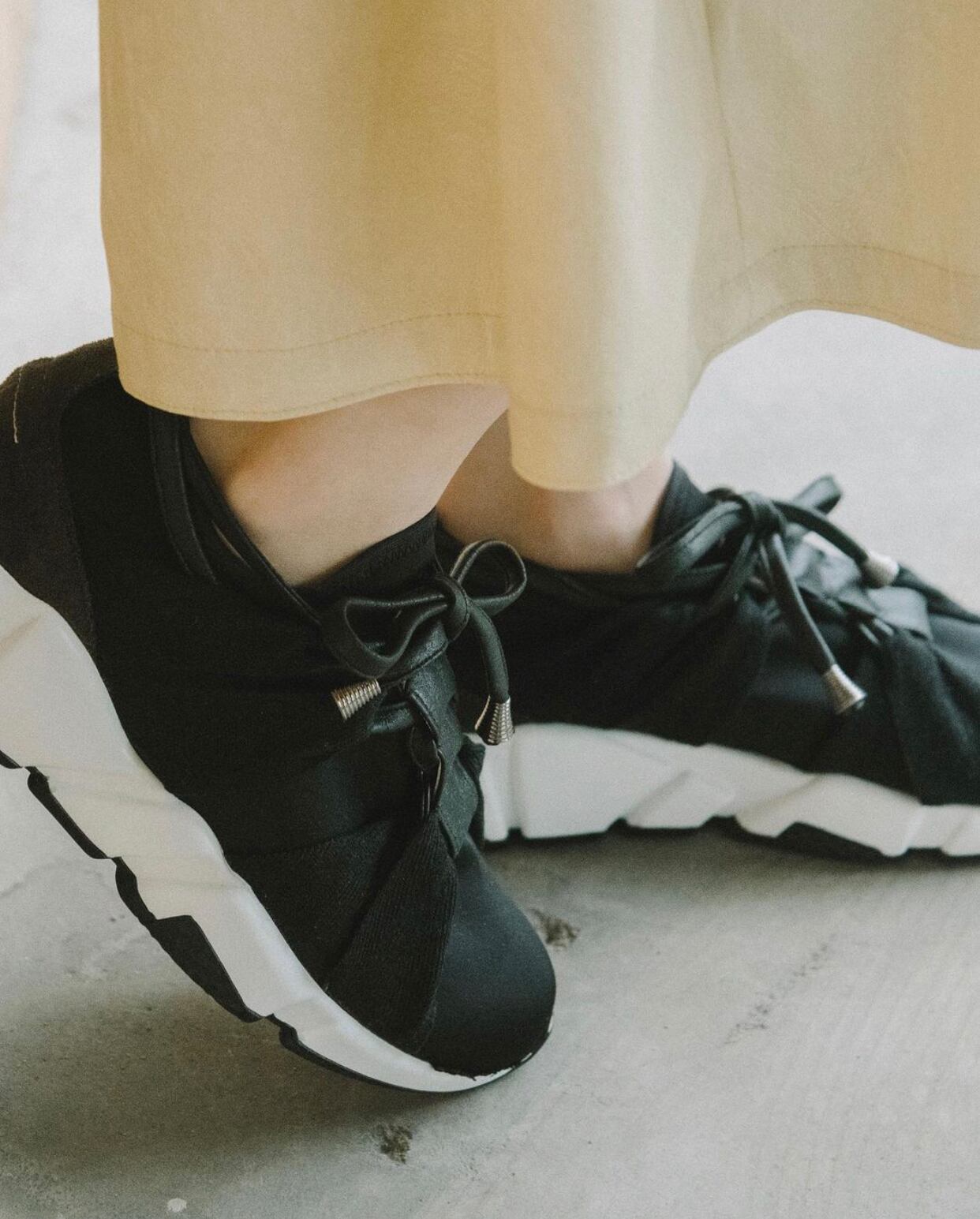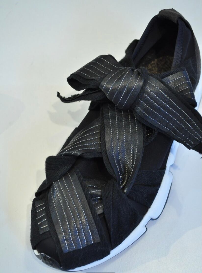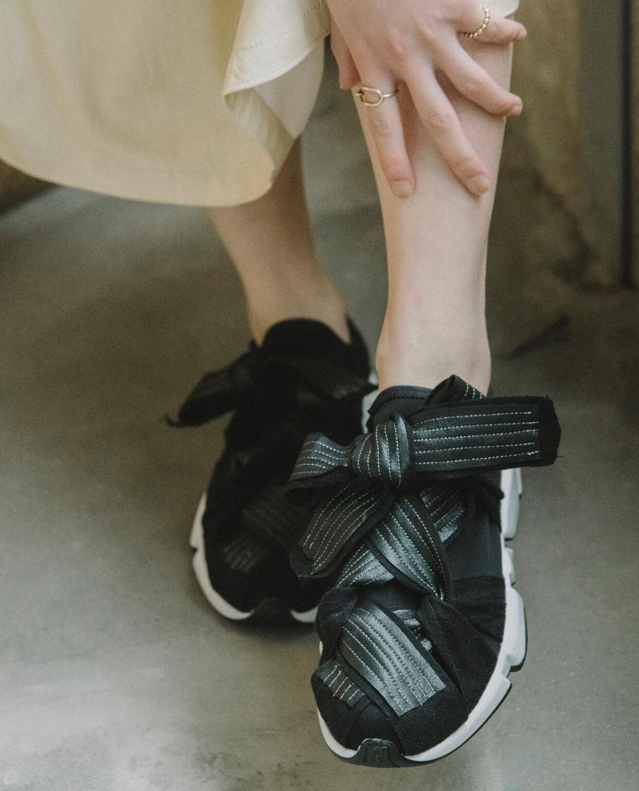 フェイクレザーリボンスニーカー BLK/リハーズオール