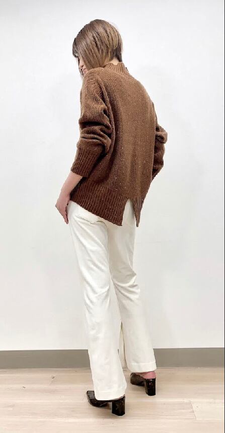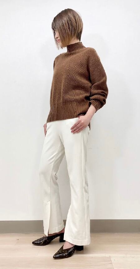 すっきりとしたラインのあたたかいフレアパンツです。