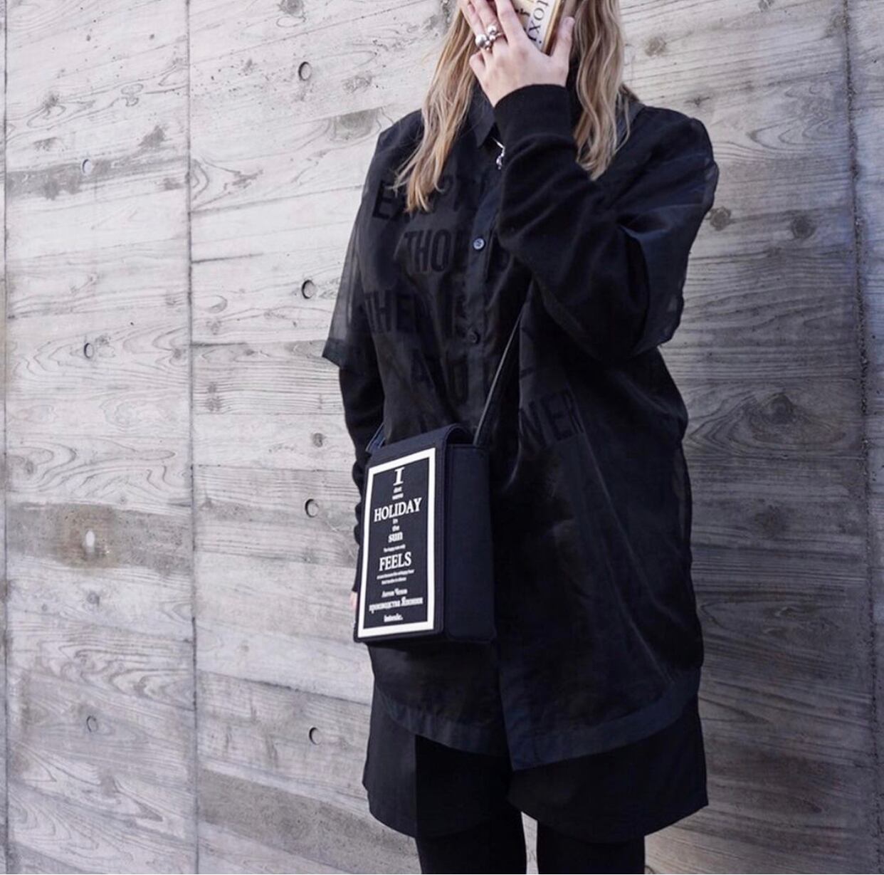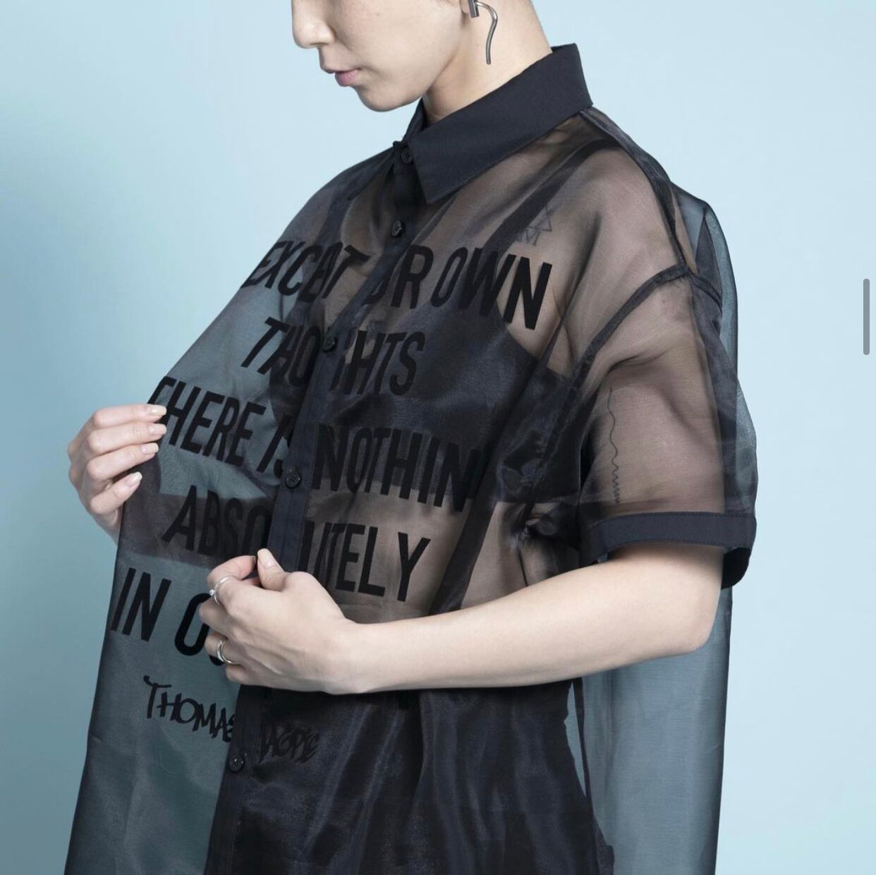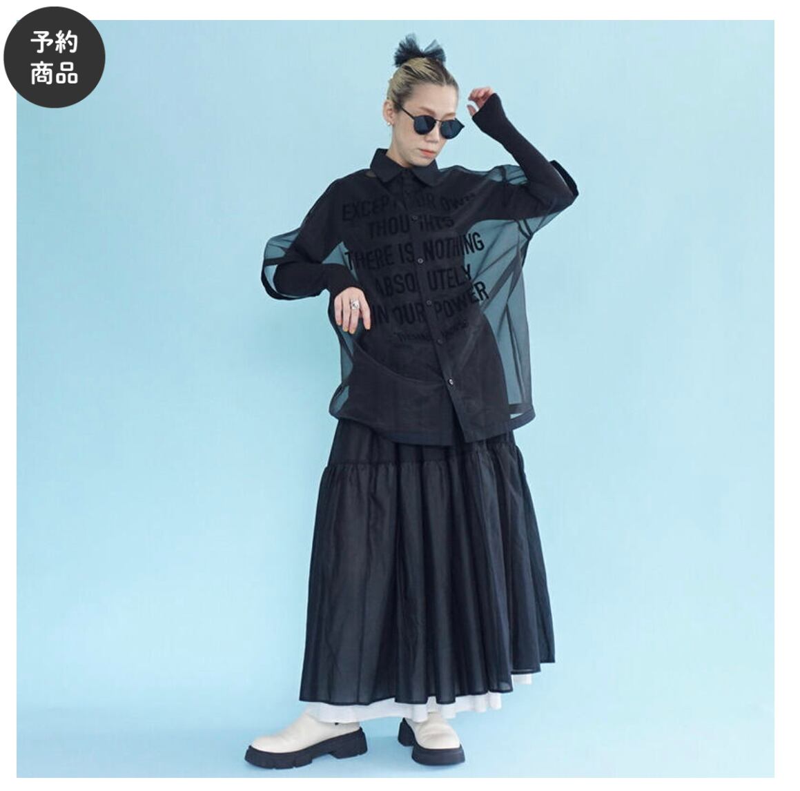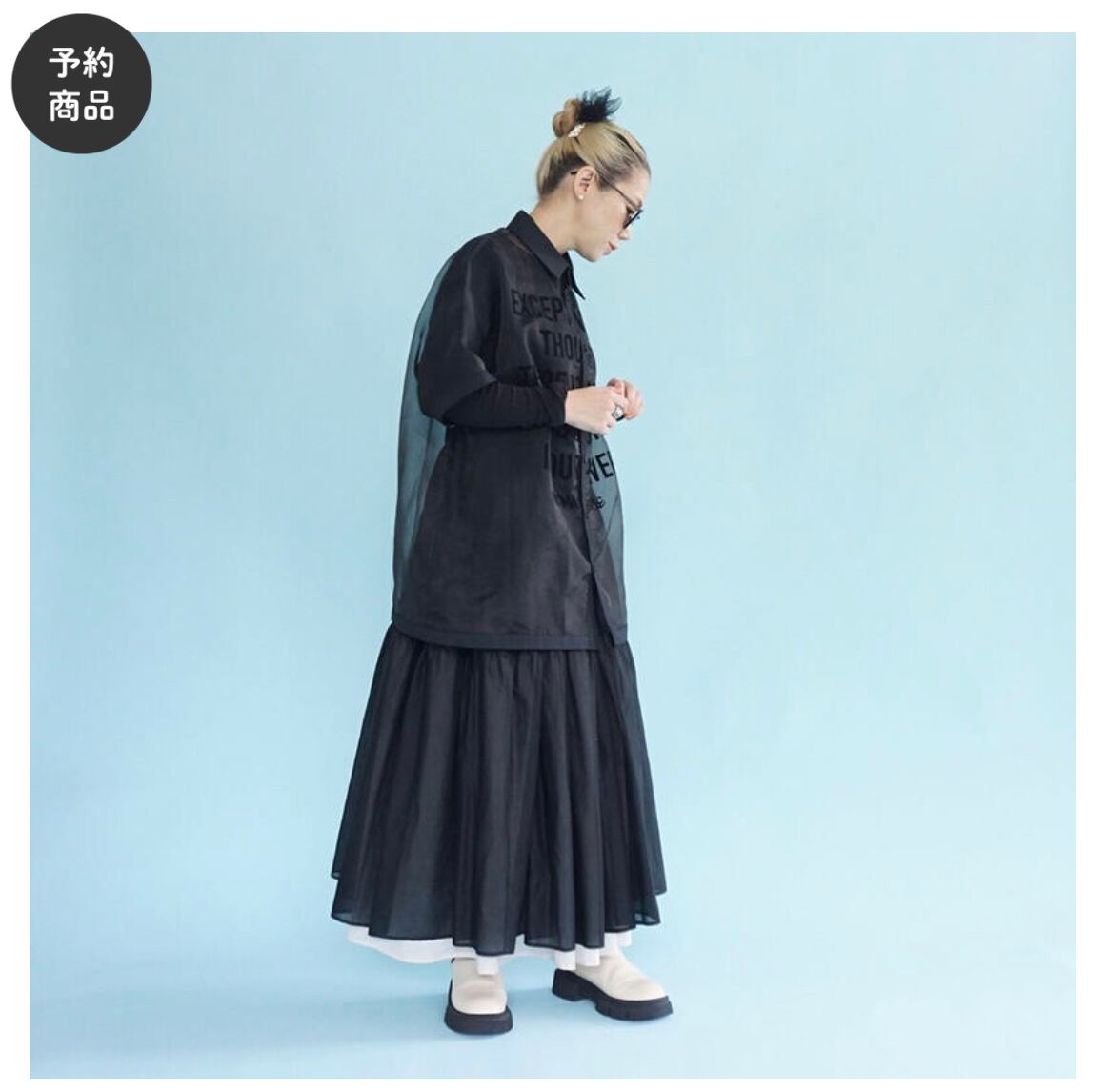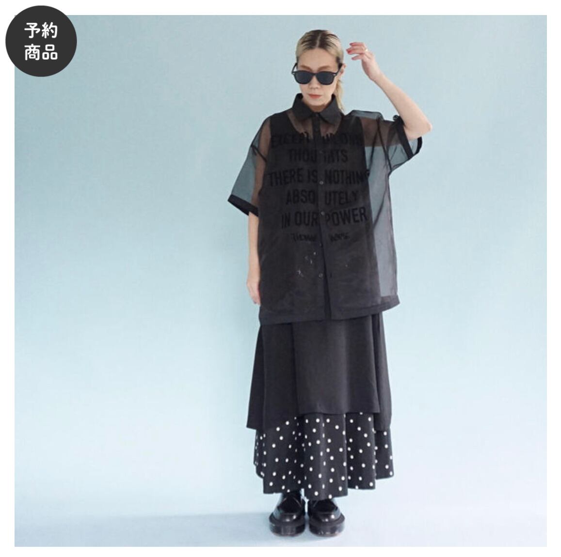 透け感のある素材ですが、セクシーさはなく、カジュアルになるようシャツ型で、ストリートモードを目指して作りました。