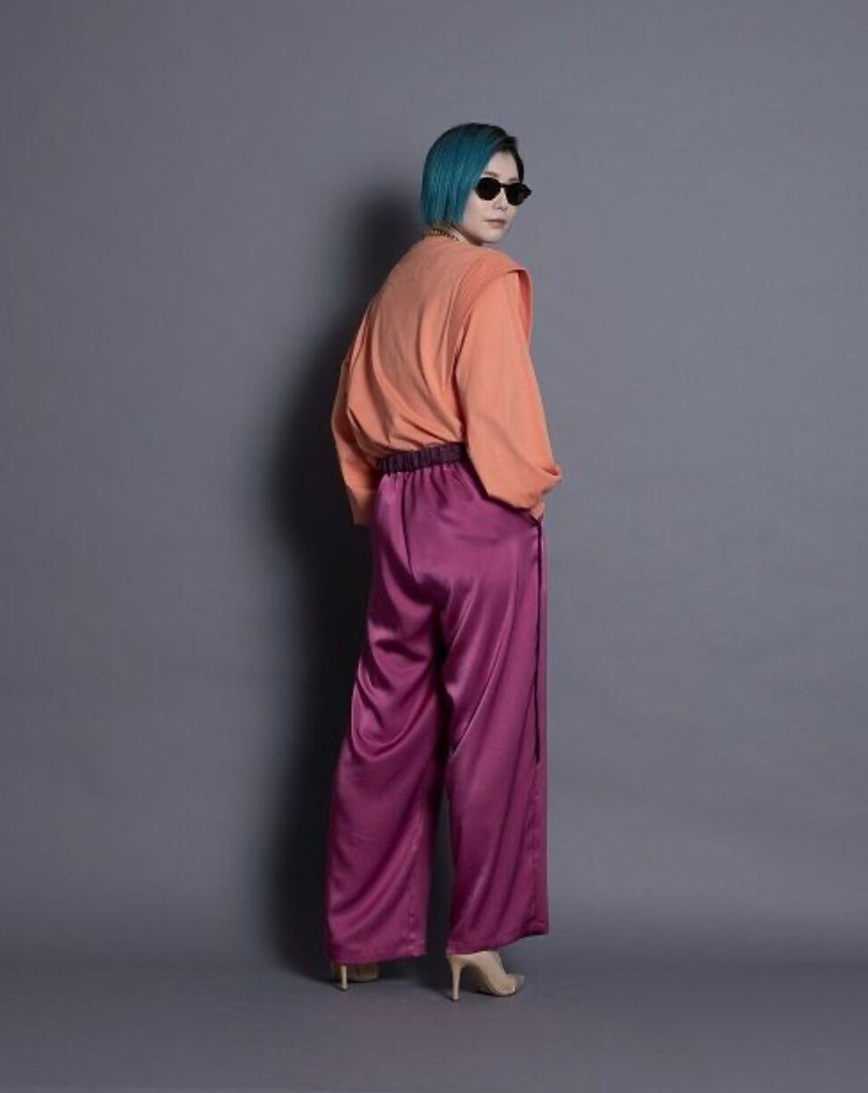 オーバーサイズのサテンイージーパンツ。