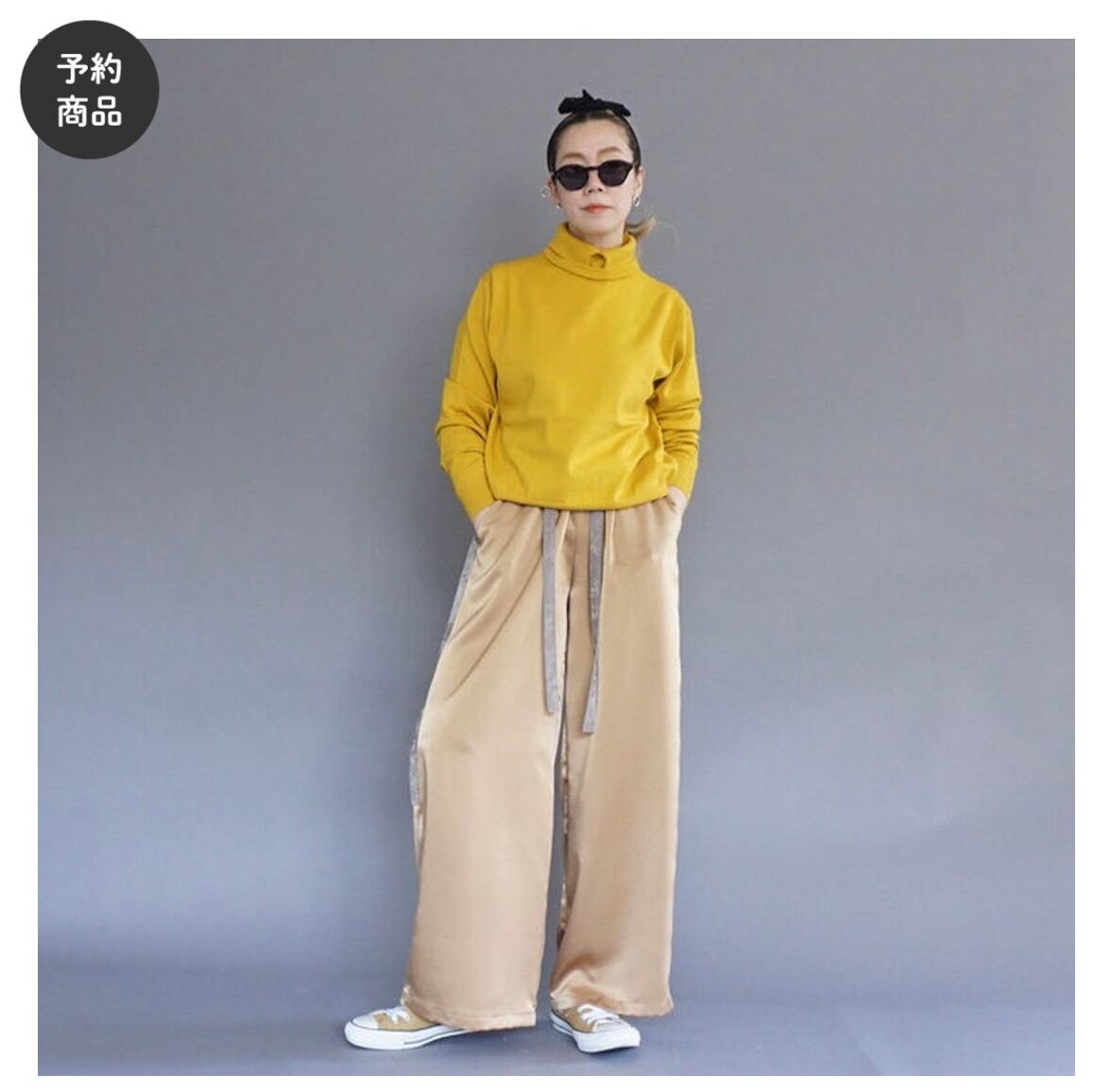 サテン素材にはあまり興味がありませんでしたが、昨年から着たくなってきました。オールシーズン、いつでも着用でき、薄すぎないピーチサテンなので真冬は、トップにあたたかなオーバーサイズのニットなどを着て艶感を楽しんでもらえそうな気がします。