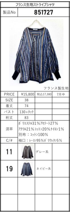 【ayane】フランス生地ストライプシャツ(851727)