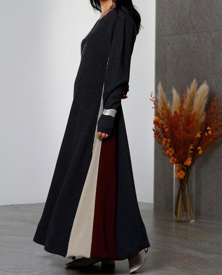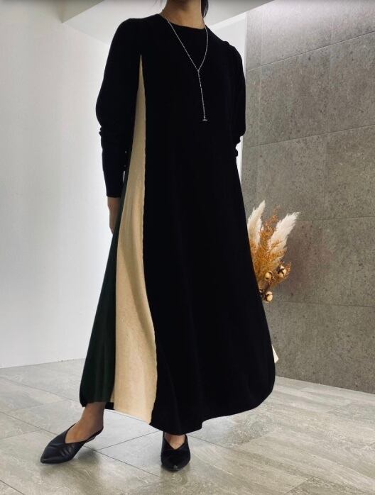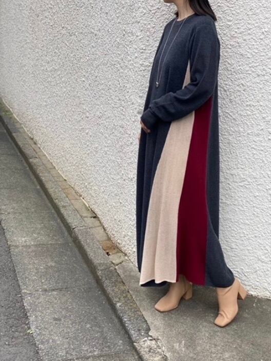 予約販売【 ROSIEE 】配色デザインニットワンピース(371217)