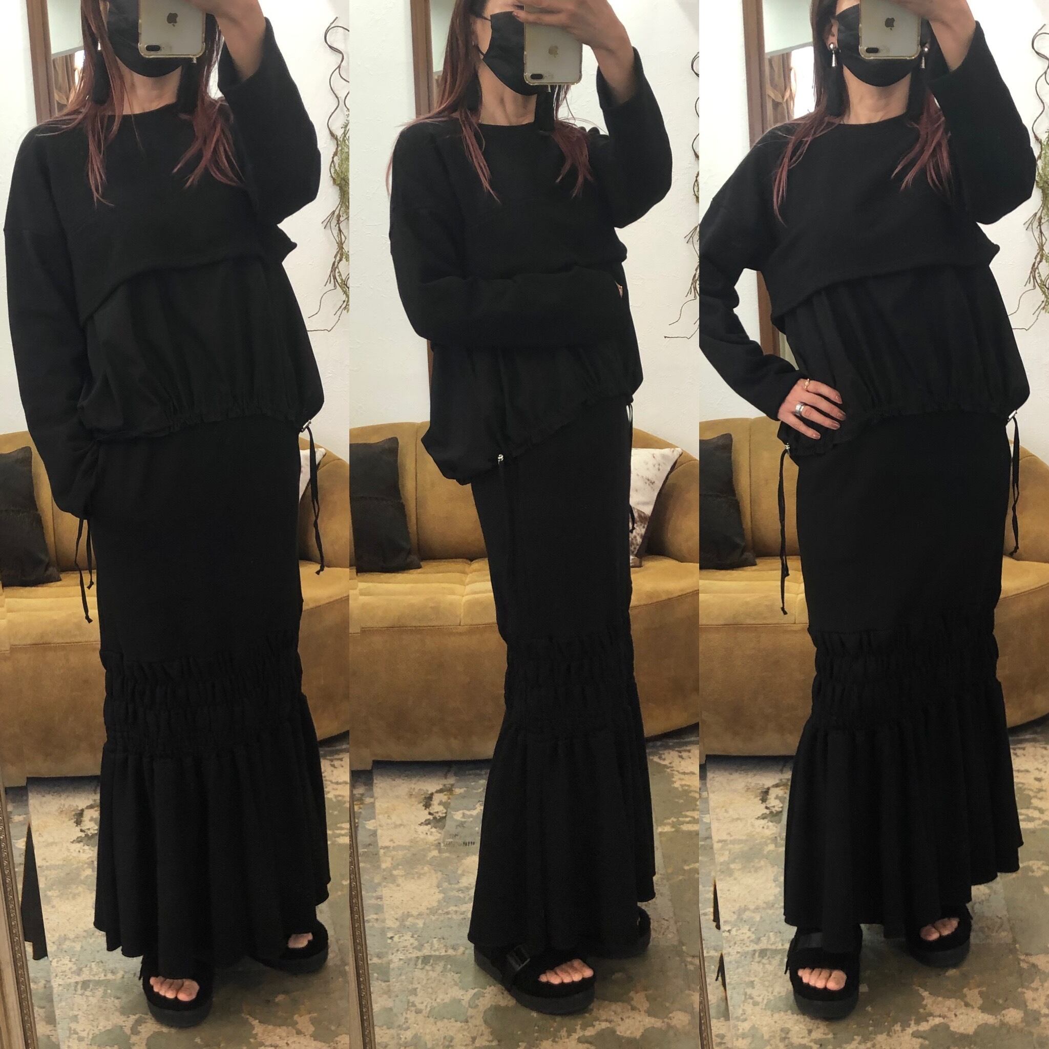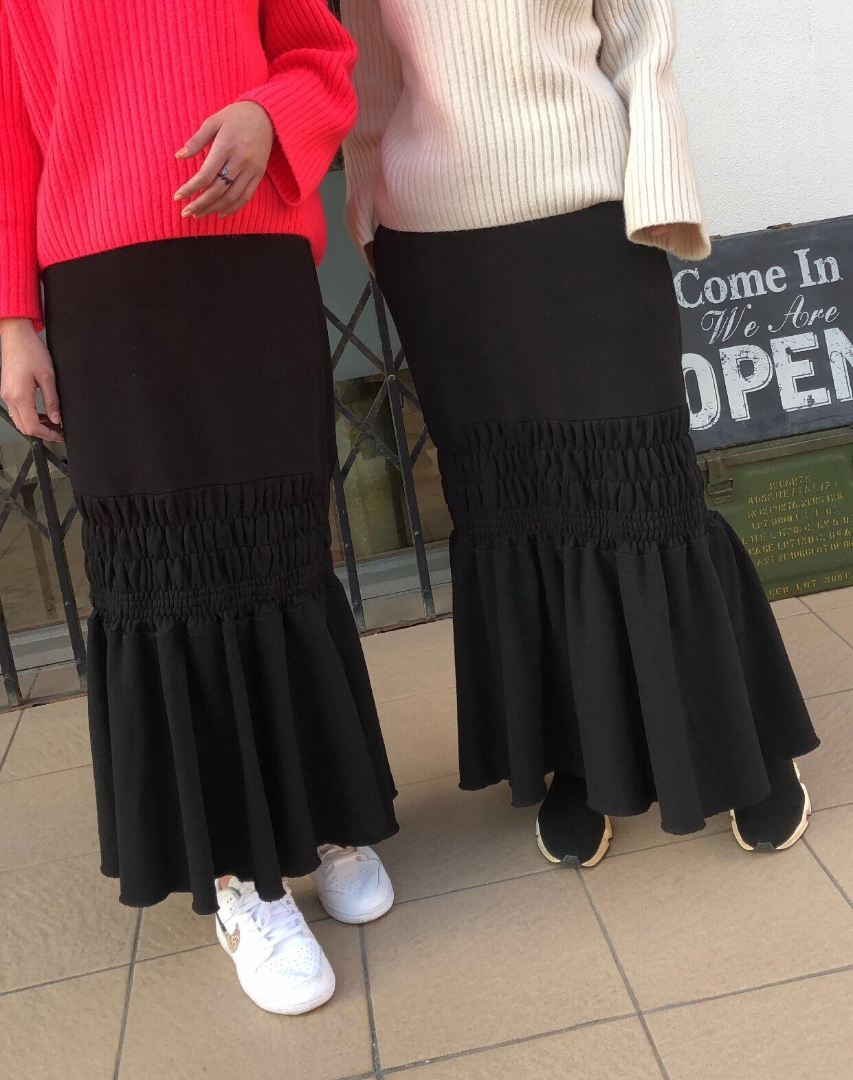 マーメイドシルエットですがウエストのゴムもゆったり目です。