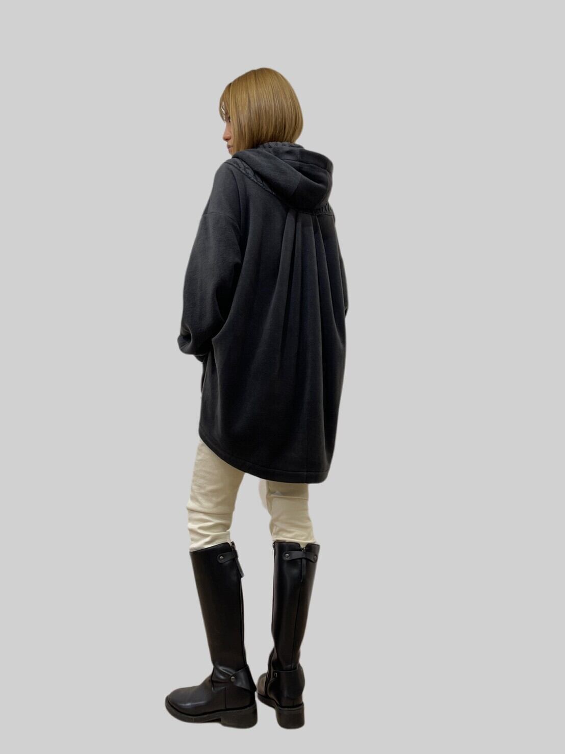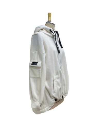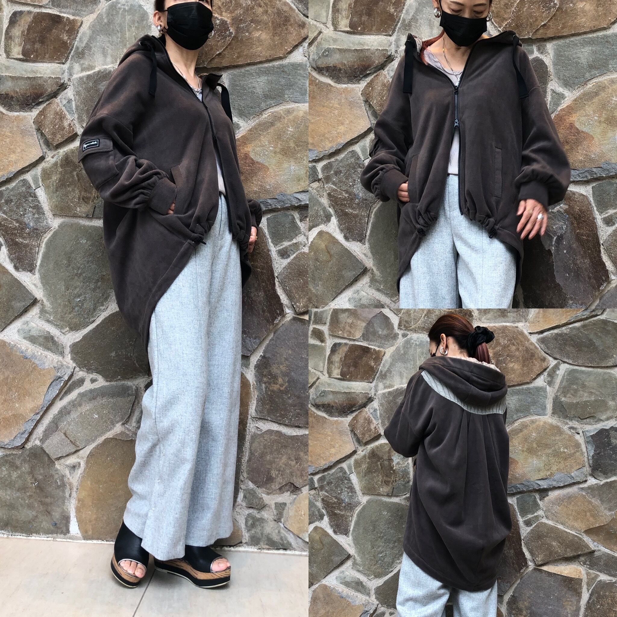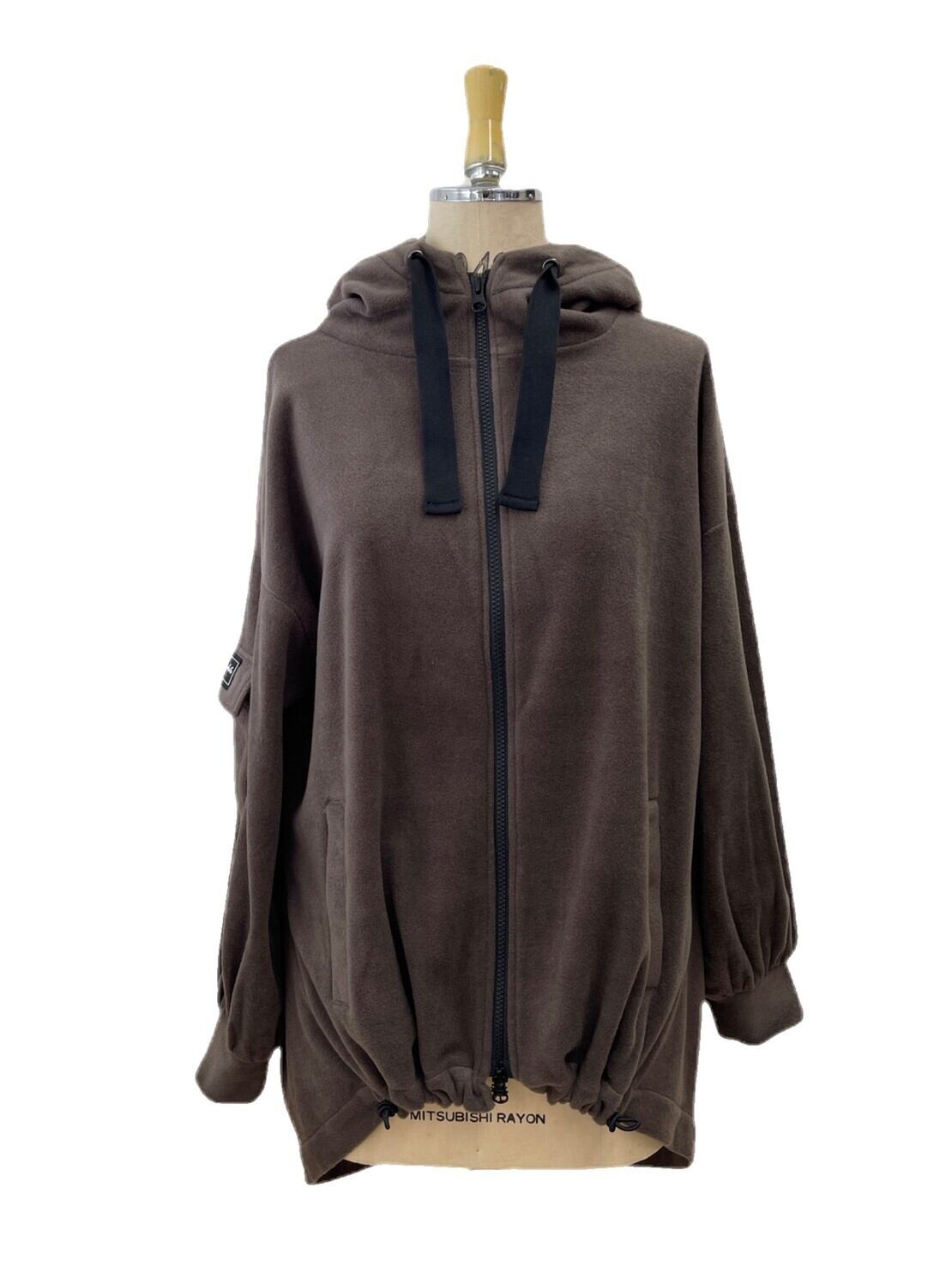 ayane特有のヒップまで隠れる丈感と軽さが特徴のフリースのドッキングパーカーです。