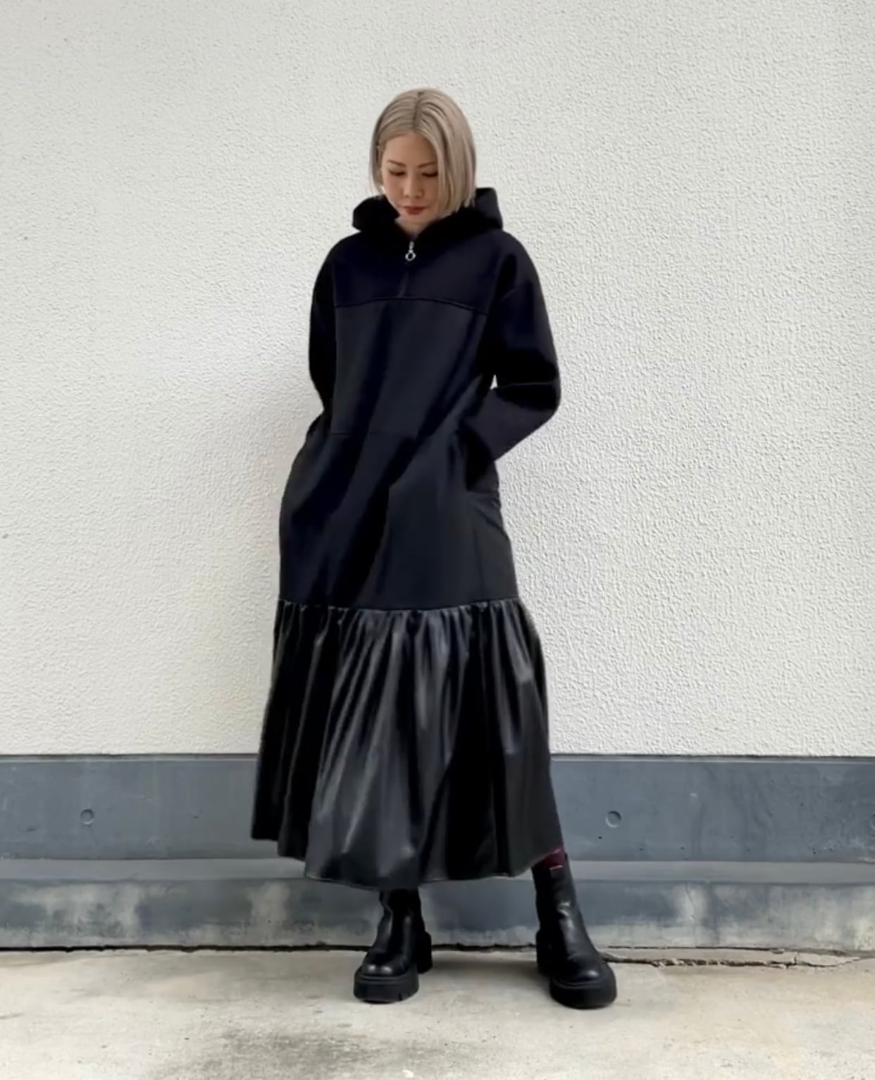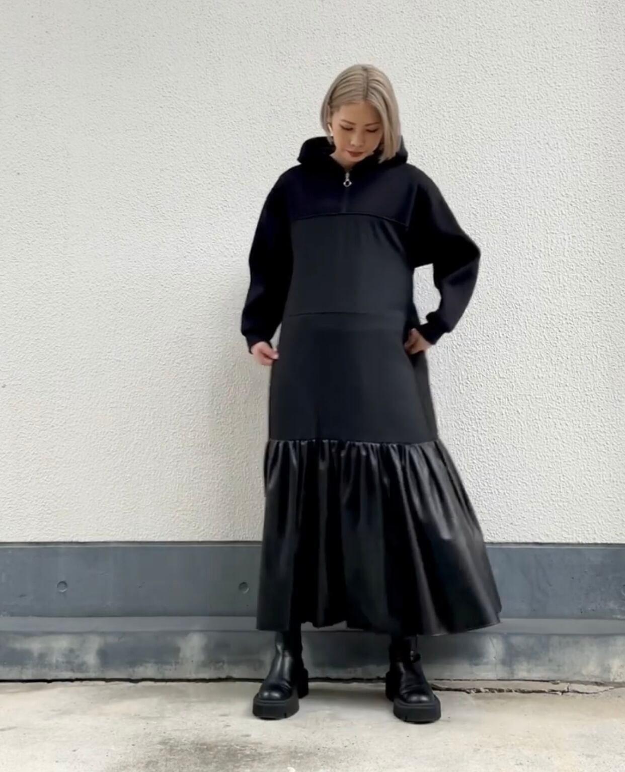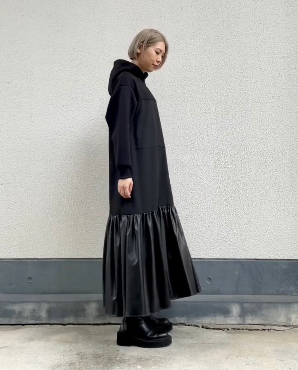 エコレザーティアードワンピース