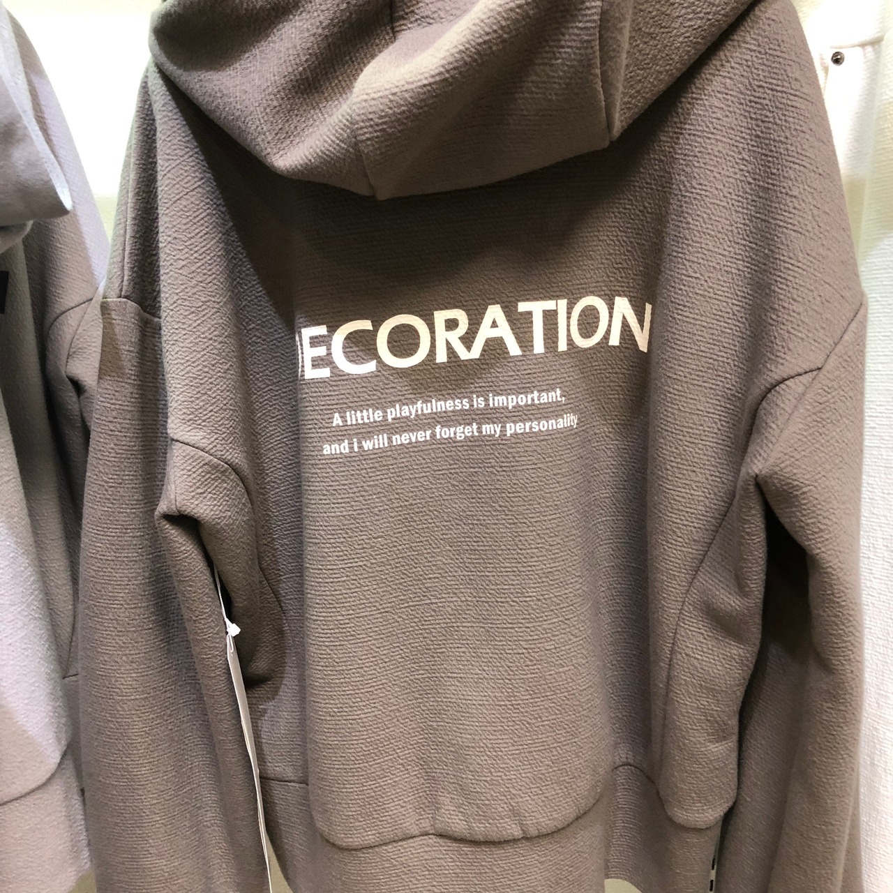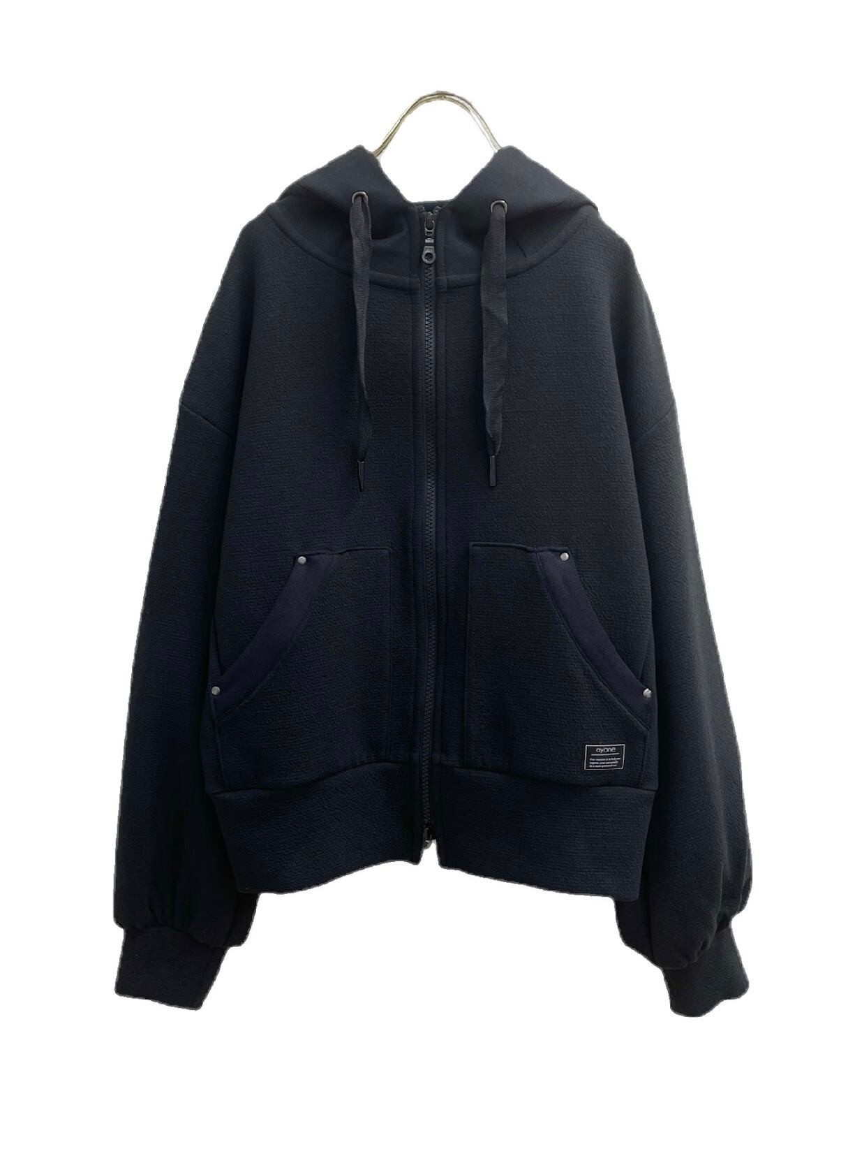 ウエスト部分を少し小さめにすることでダブルジップの効果を発揮!裾部分のジップをあげたときの開き具合を計算して小さめに作製されたジップアップパーカー。