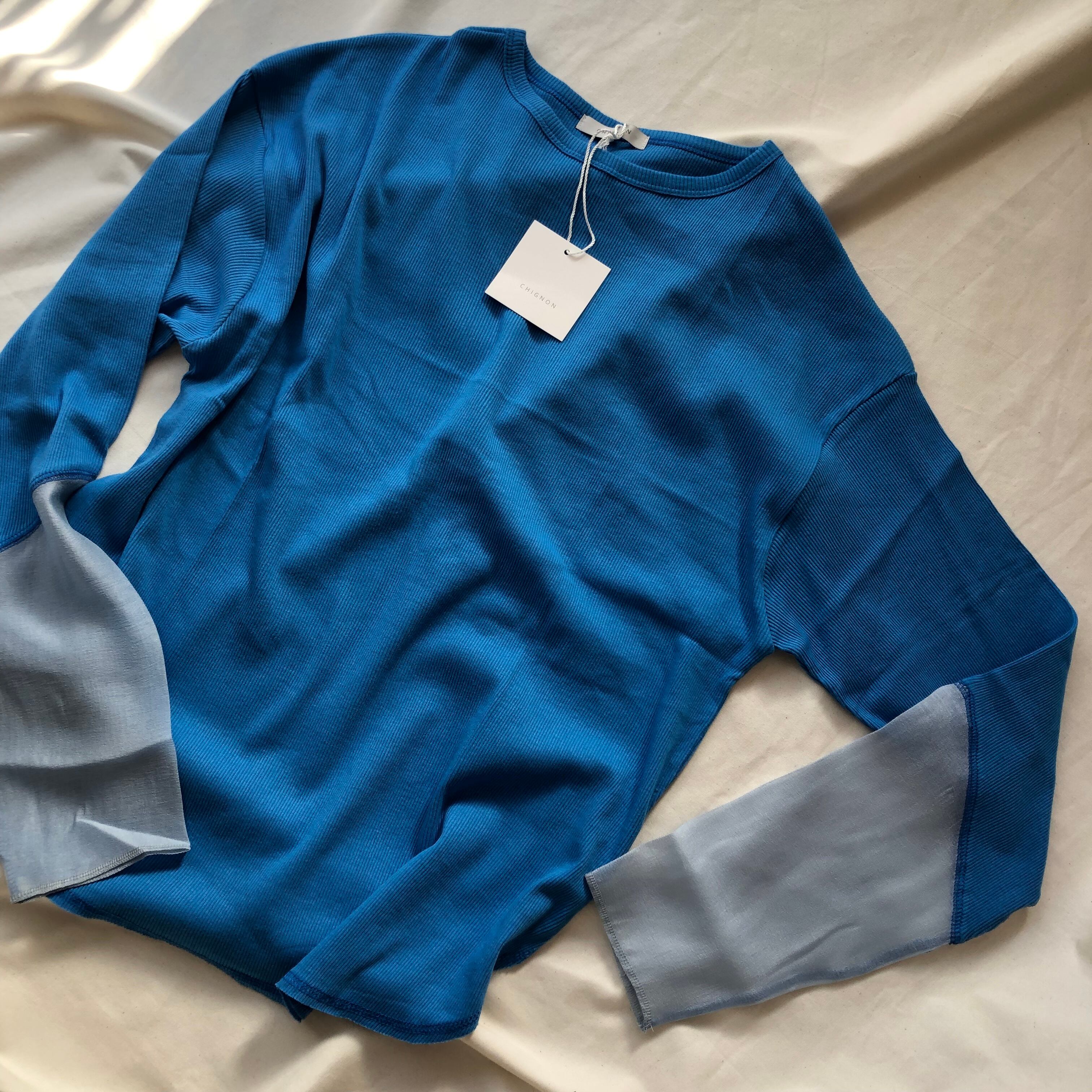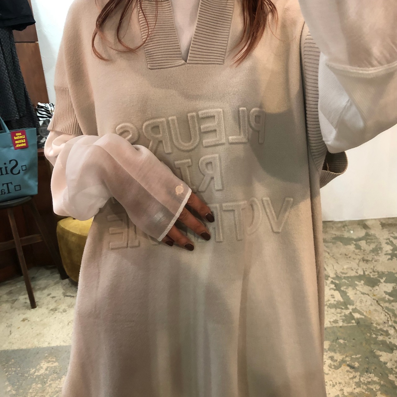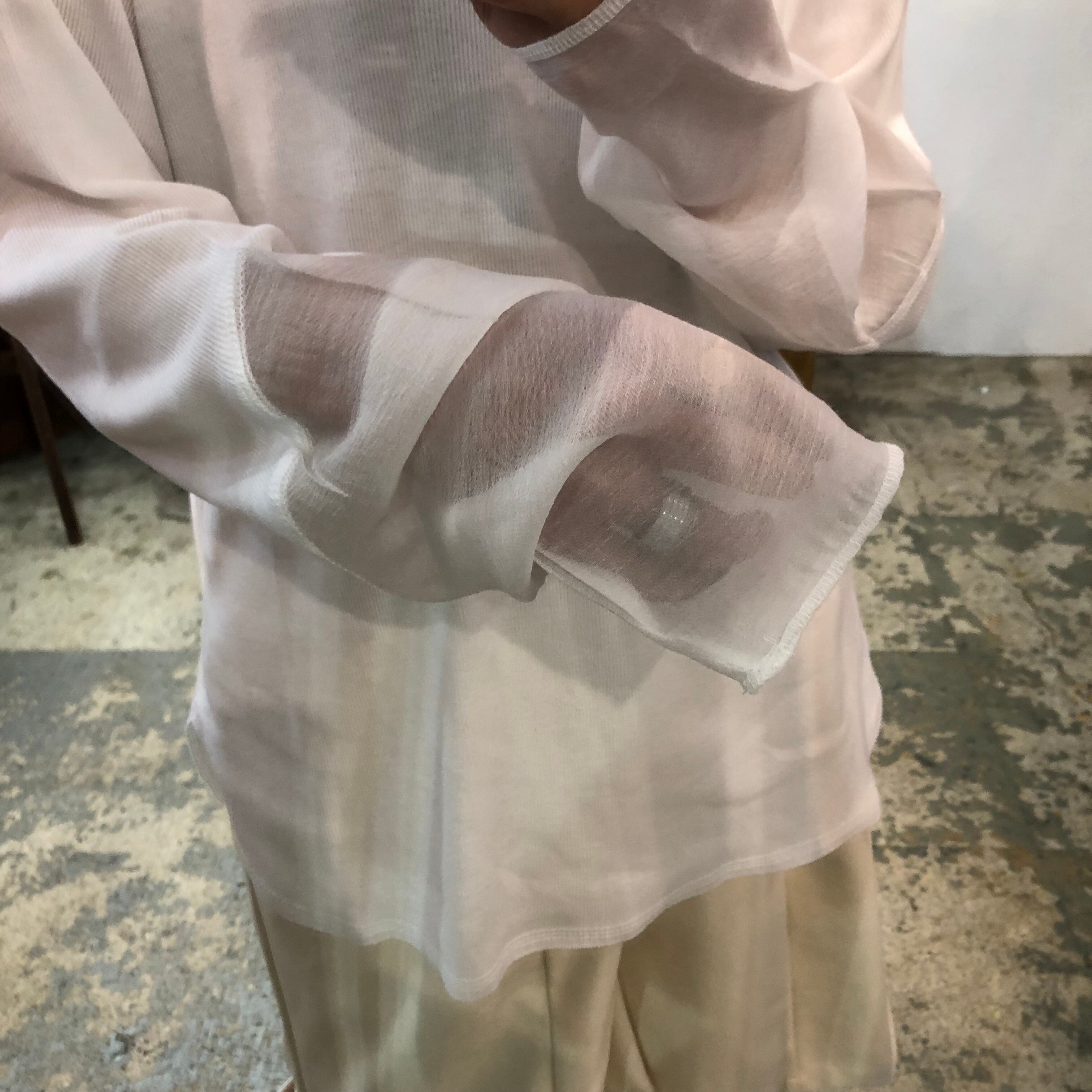 一枚で着用可能ですが、ニットやパーカーの袖からシアー部分をのぞかせて可愛いプルオーバーです。