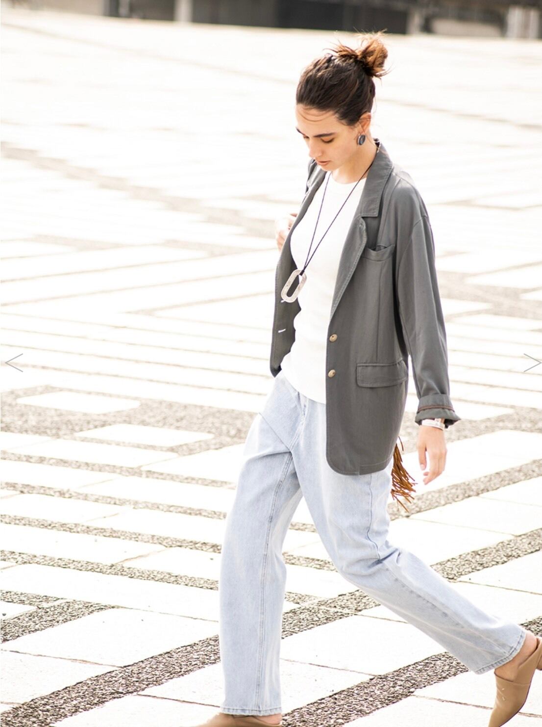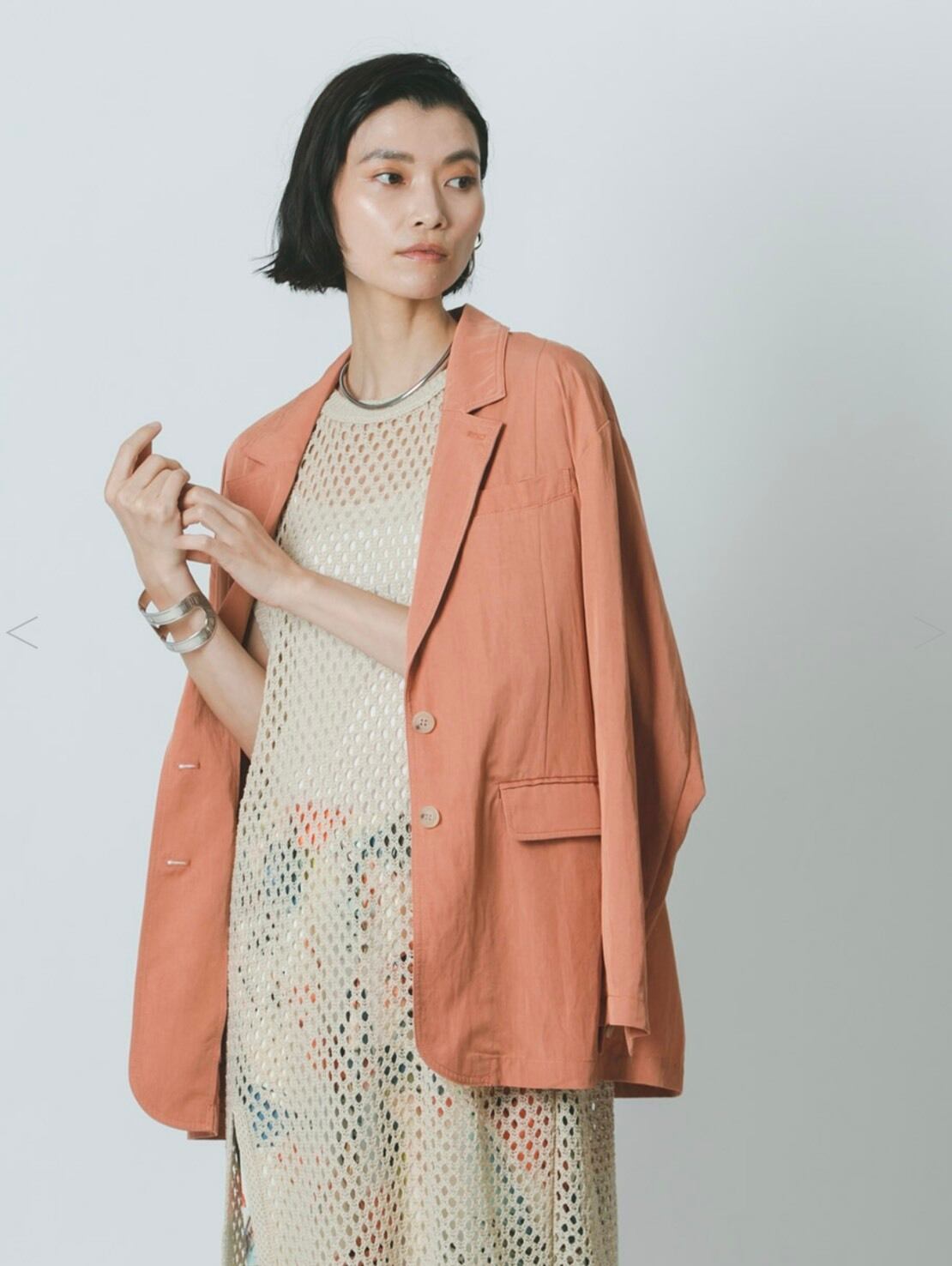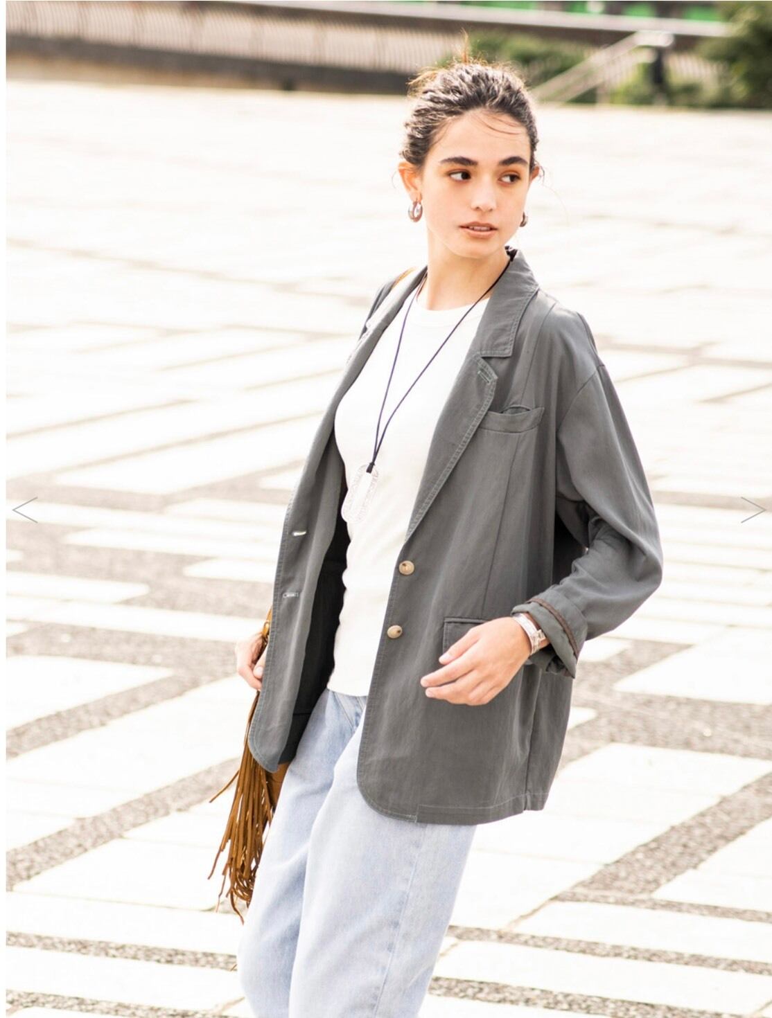 抜け感のある女性らしいジャケットなので、シャツ間隔でラフに羽織っていただけます。