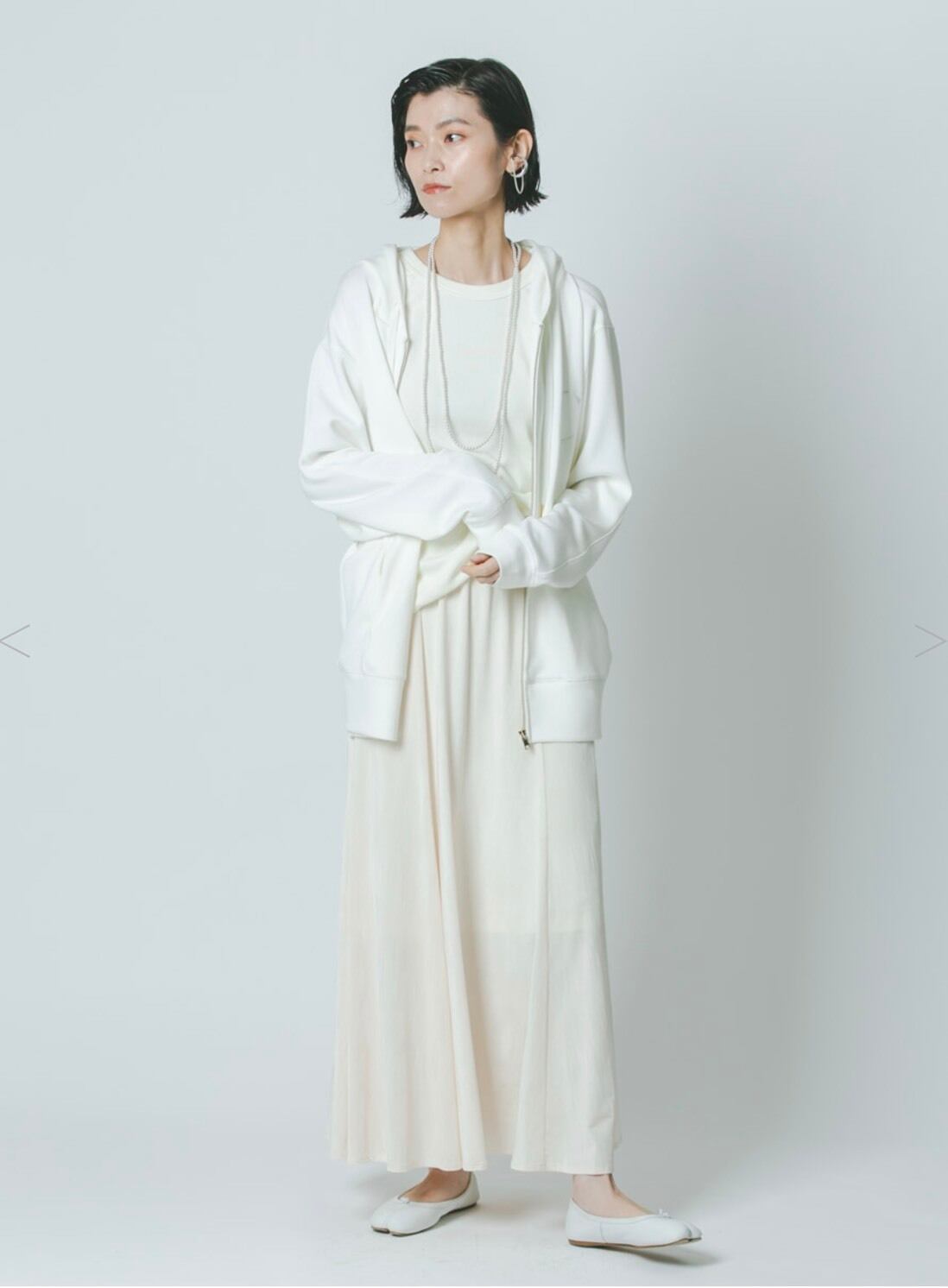 いつもよりもすっきりしたシルエットで、春のまだ寒い時期に軽アウターの下に着ていただけるように作りました。