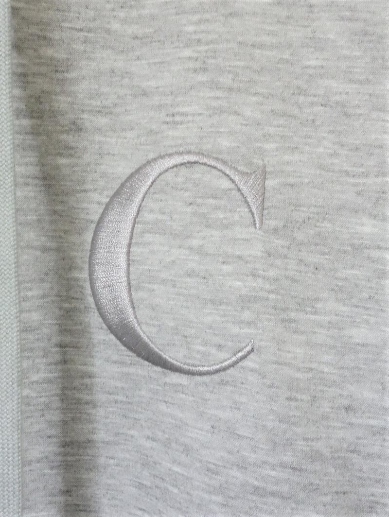 左胸に施した生地と同色のCのイニシャル刺繍がさりげないポイントになっています。