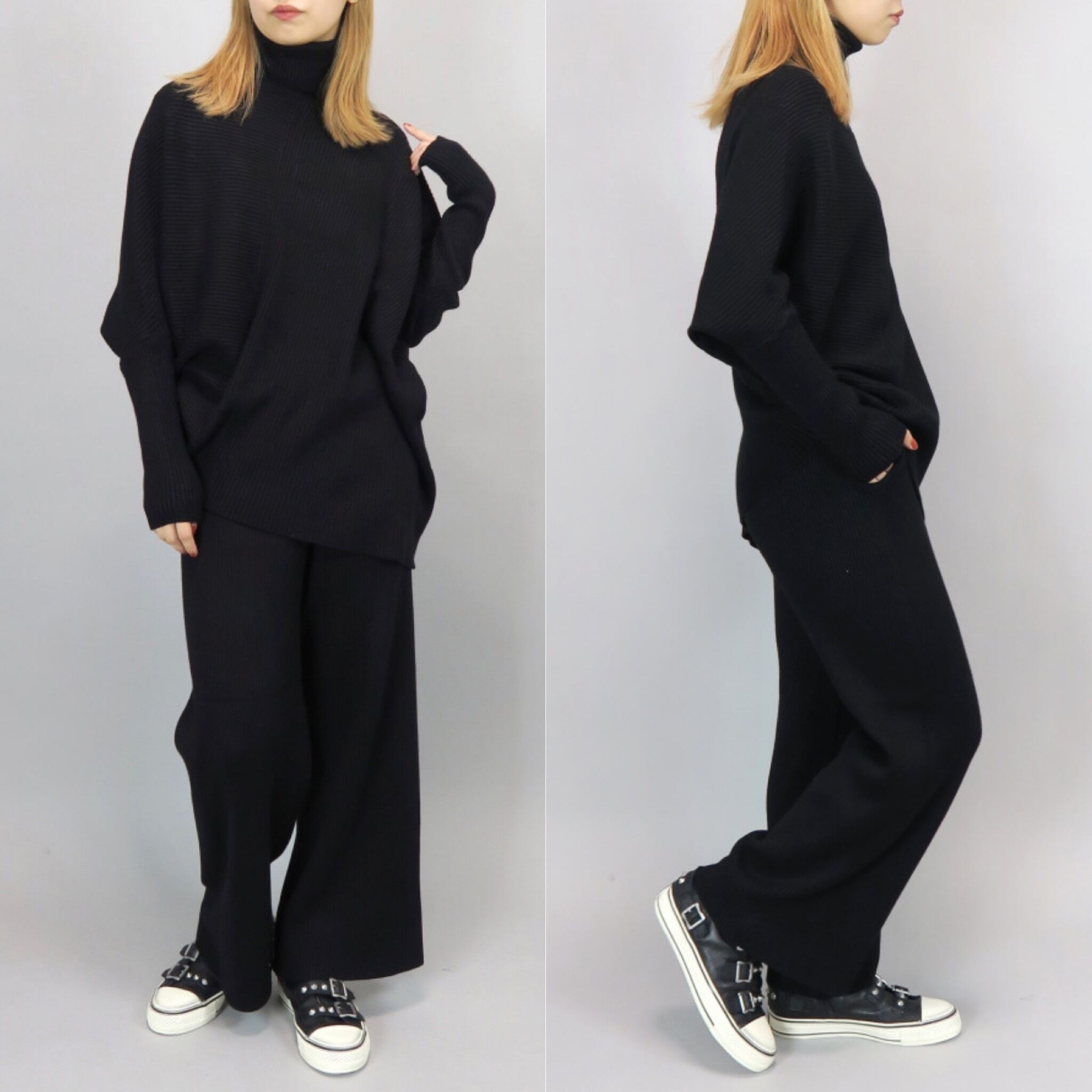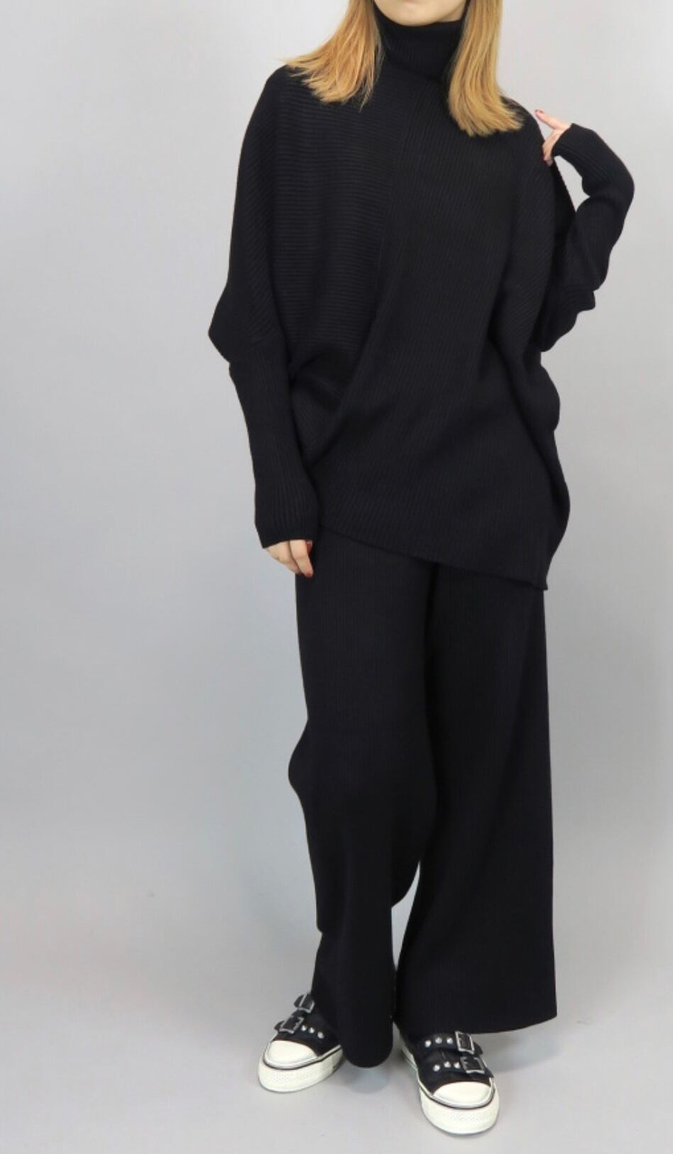 【 MICALLE MICALLE 】asymmetry lib knit set up(M110-041X)