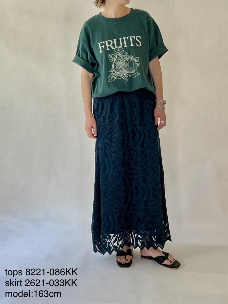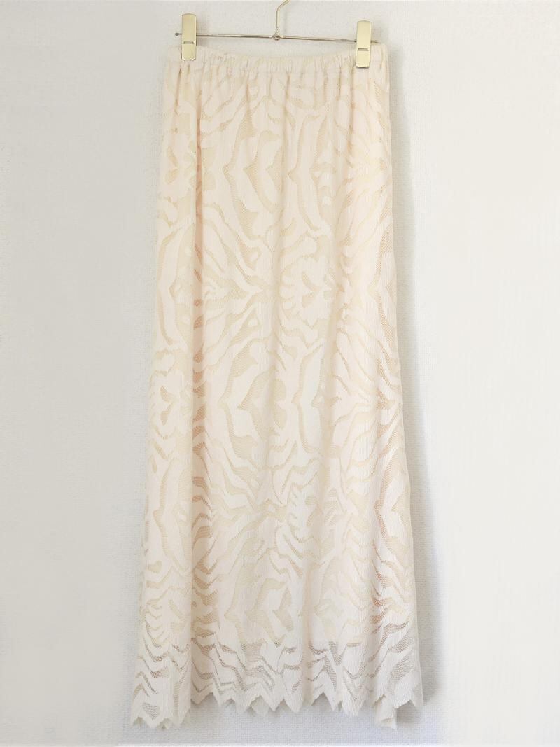 目の引く大柄の大人っぽいレースを使用したギャザーレーススカートです。