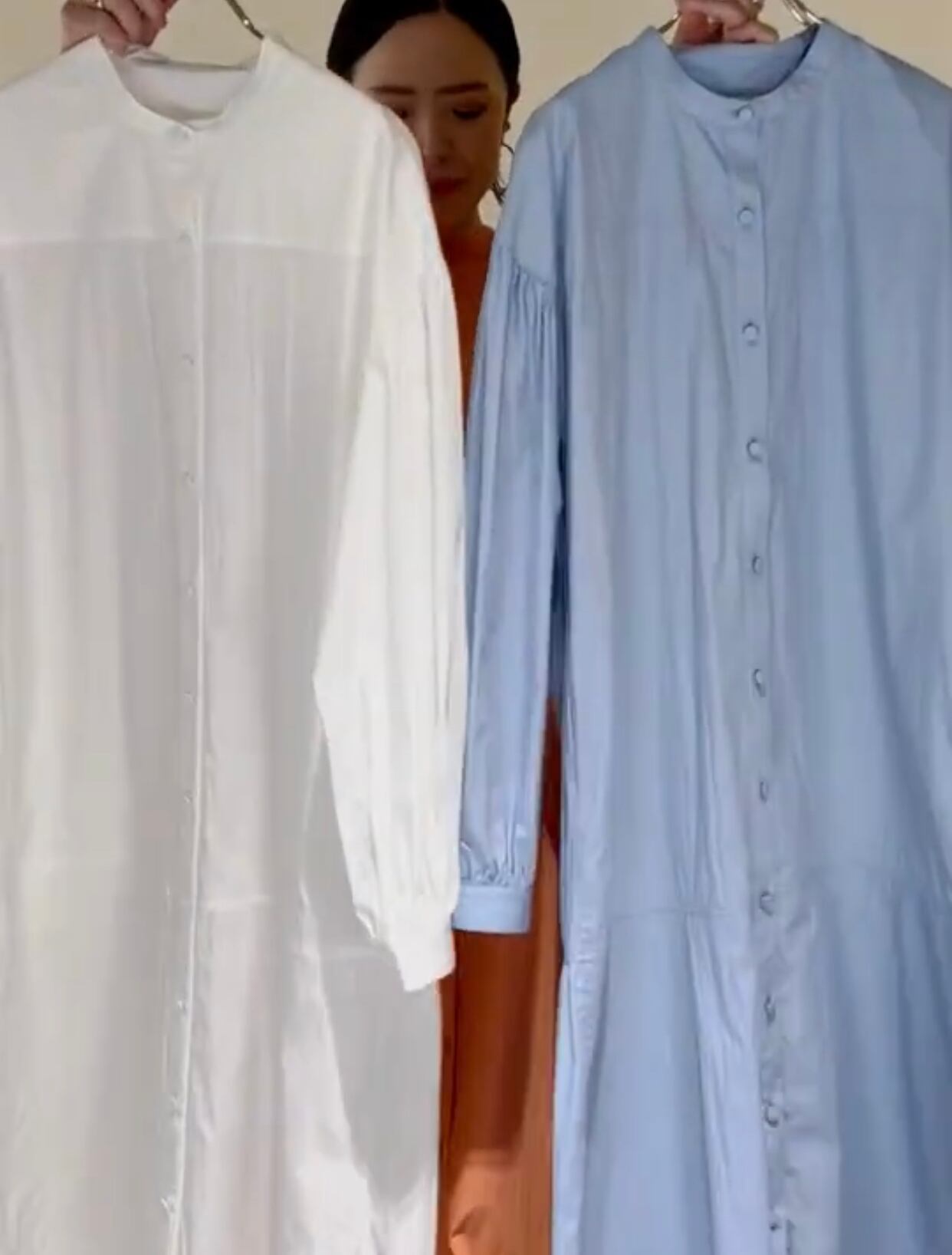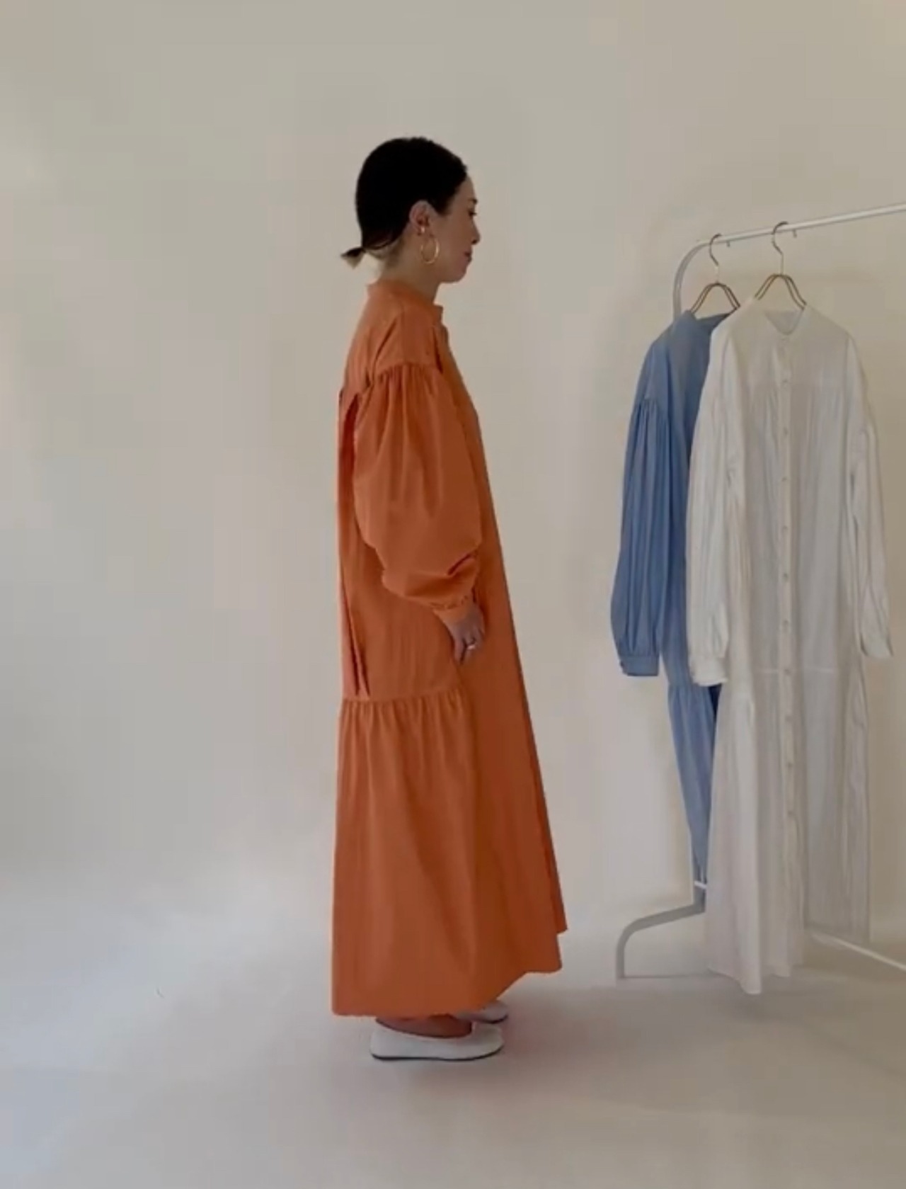 ローウエストの切り替えやボリュームスリーブが今年らしい、1枚で様になるモードな雰囲気のワンピースです。