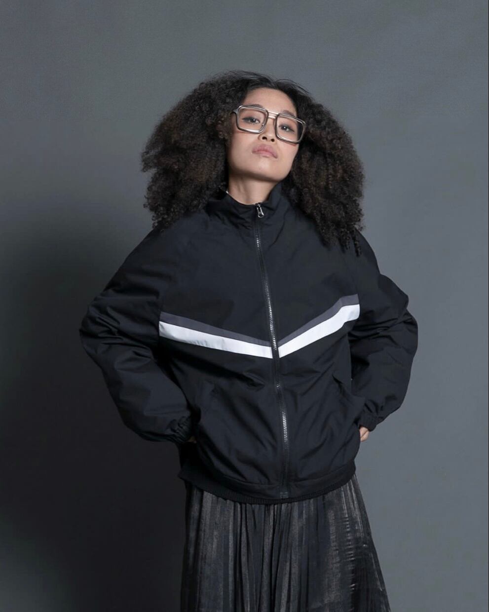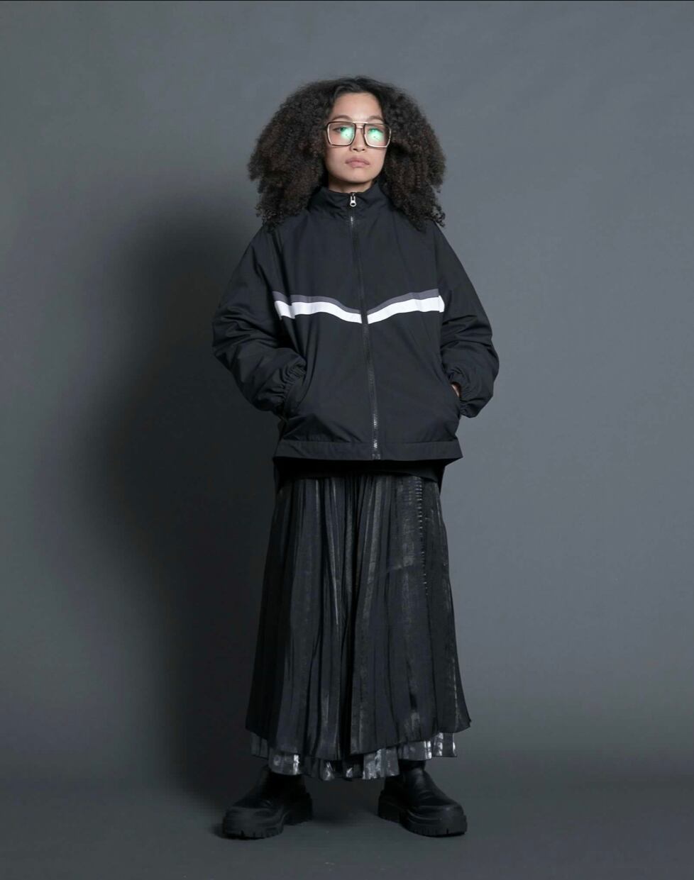 プリーツなどスカートのアウターにブルゾンでカジュアルに。