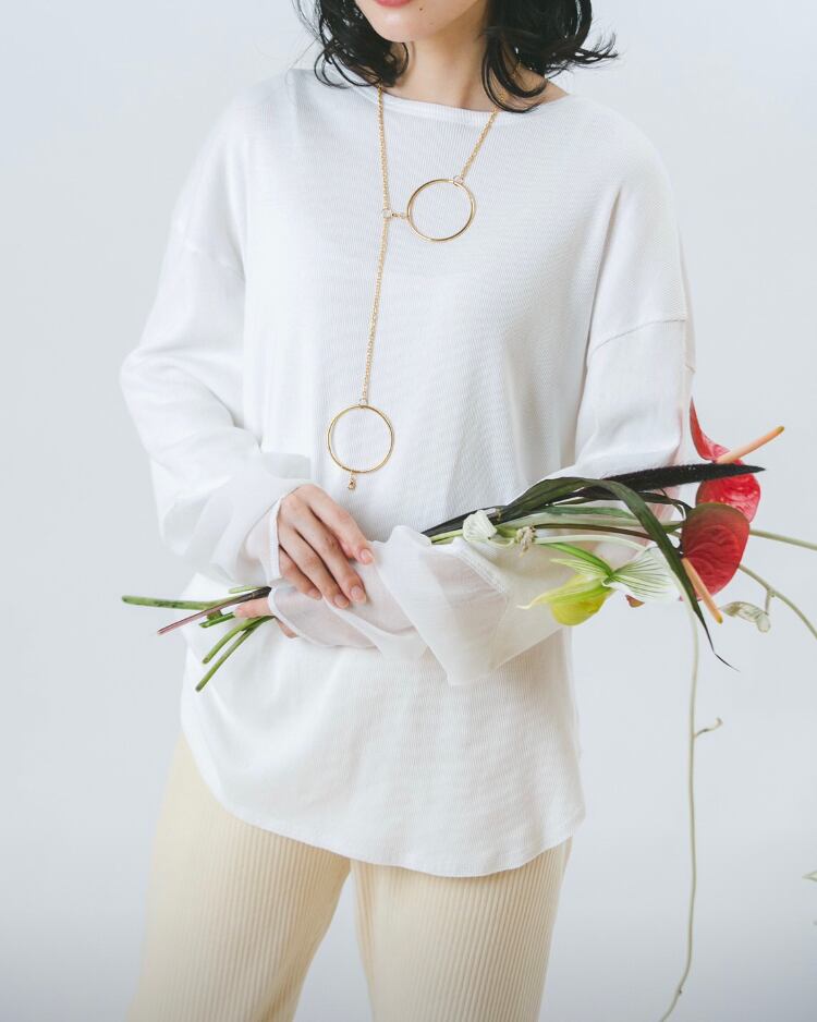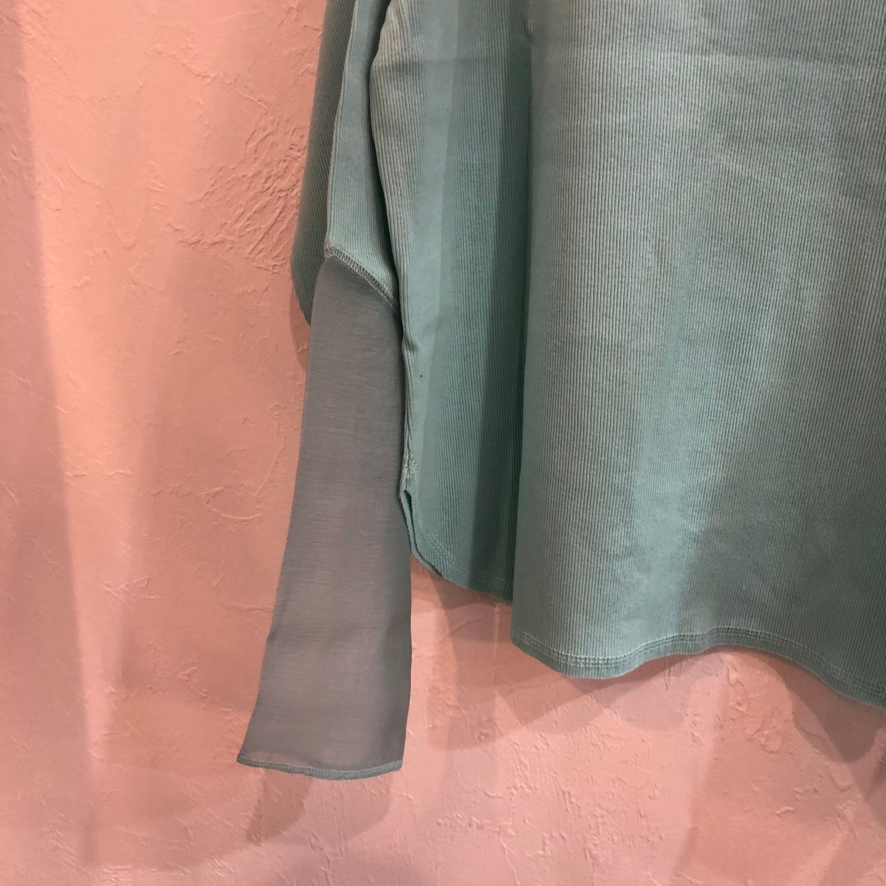 一枚で着用可能ですが、ニットやパーカーの袖からシアー部分をのぞかせて可愛いプルオーバーです。