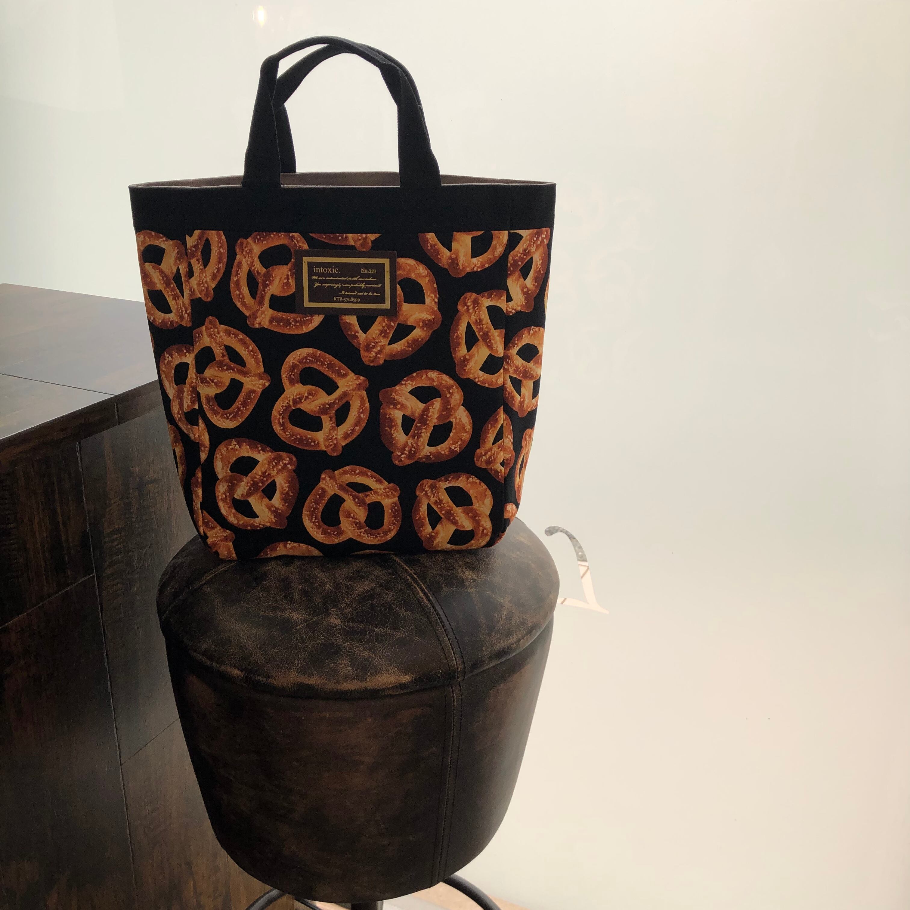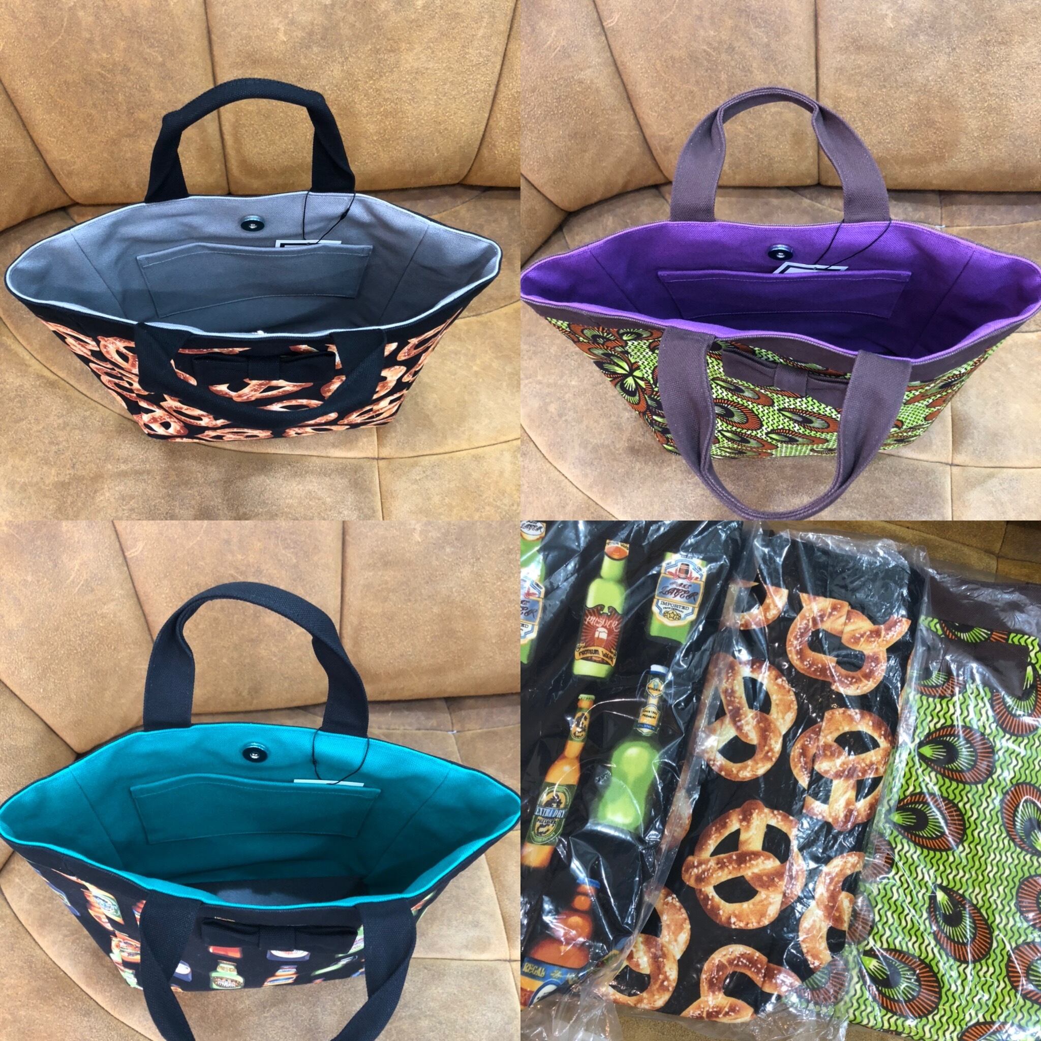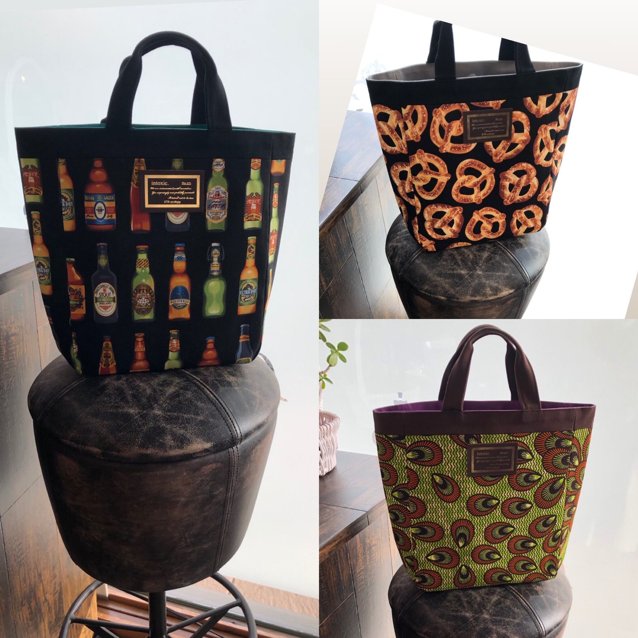 個性的なテキスタイルやロゴを使用し、ファブリックバッグやレザーバッグを作成。