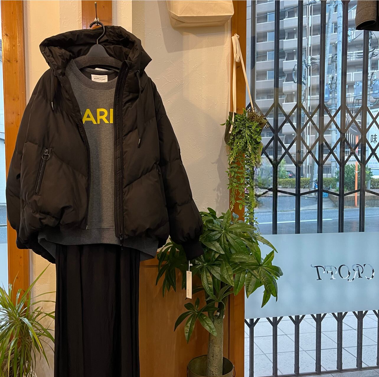 身幅ゆったりのスカートにもパンツにも合わせやすいトップスです。