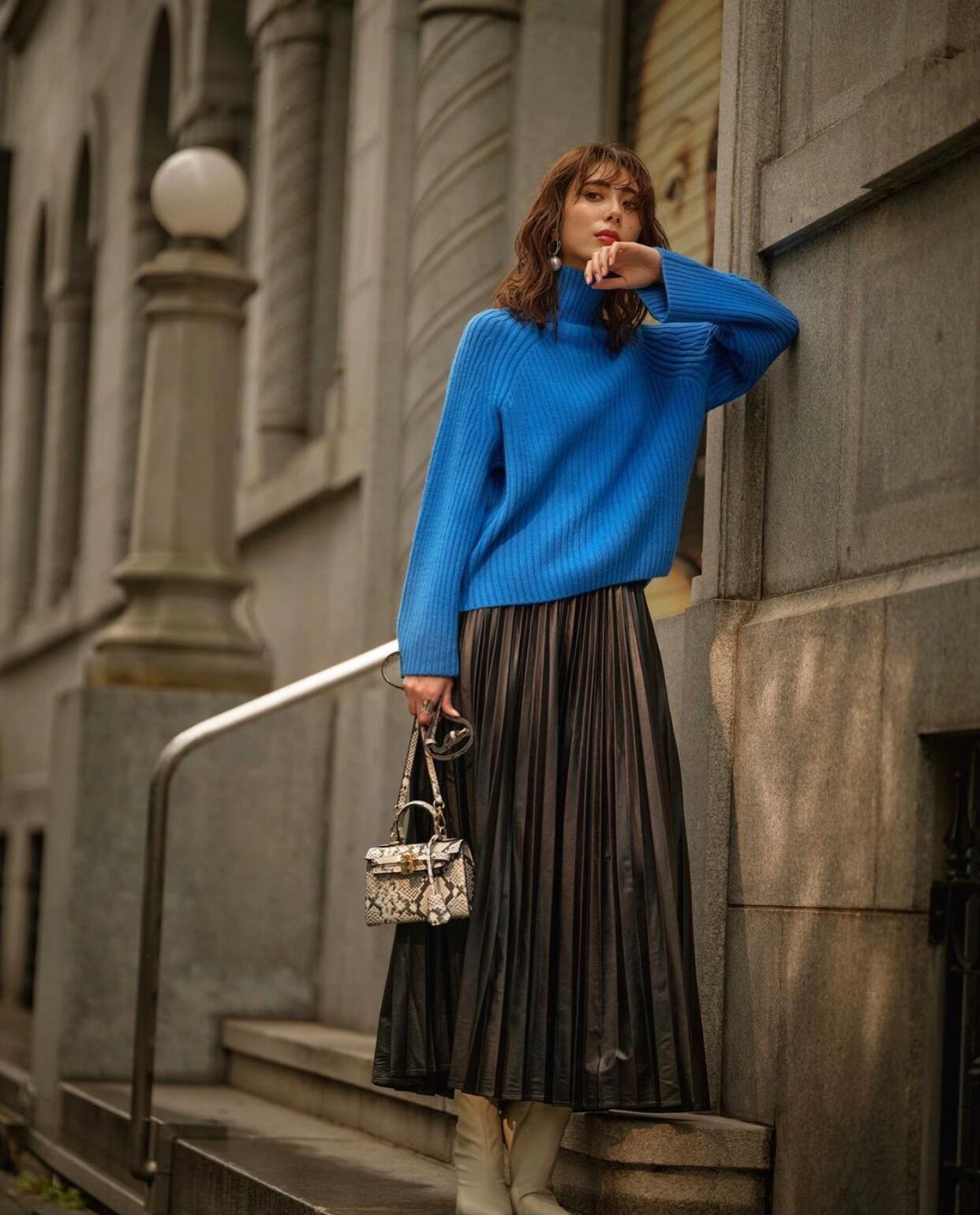 【 micalle micalle 】フェイクレザープリーツスカート(M008-047S)