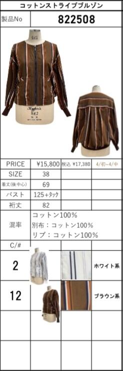 予約販売【ayane】コットンストライプブルゾン(822508)