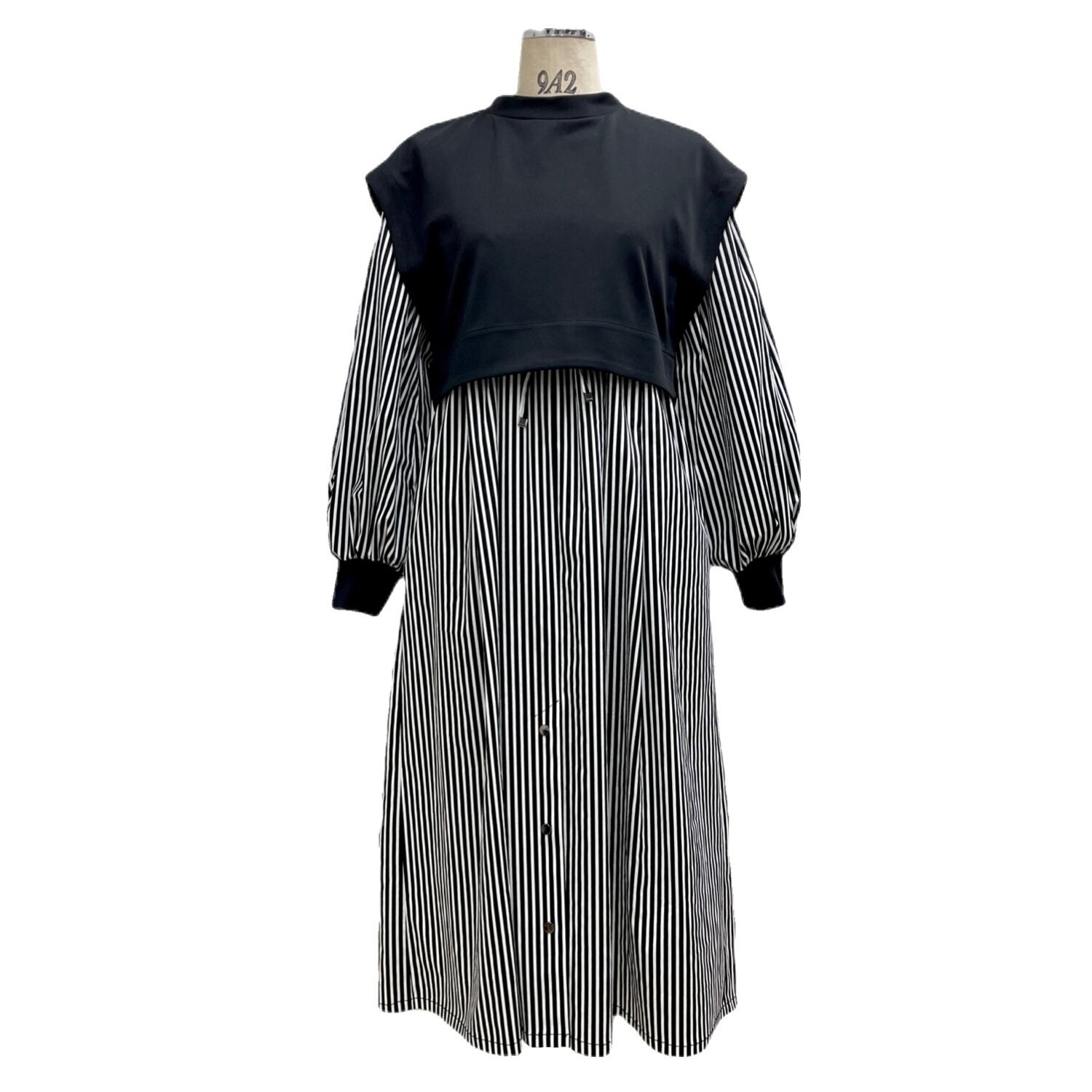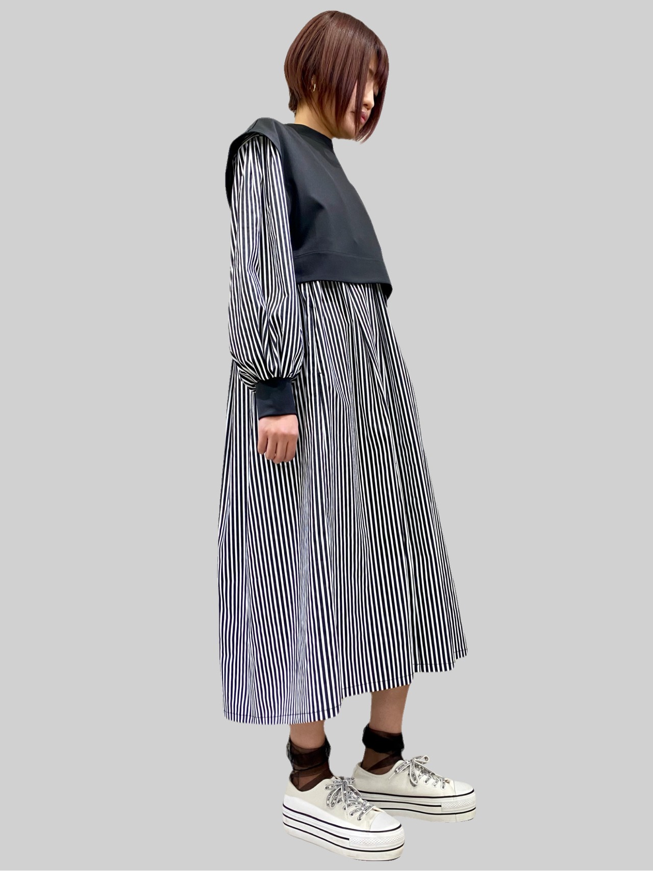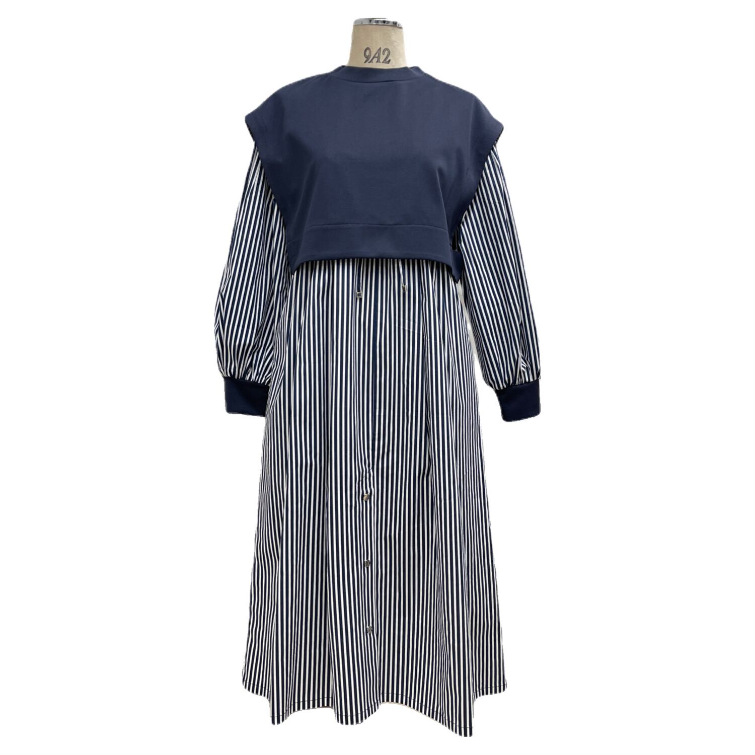 予約販売【ayane】ベスト付きストライプワンピース(822513)
