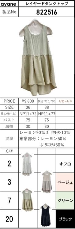 予約販売【ayane】レイヤードタンクトップ(822516)