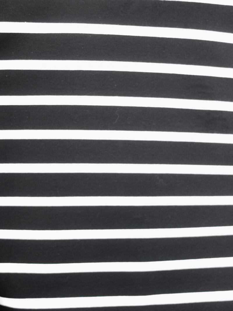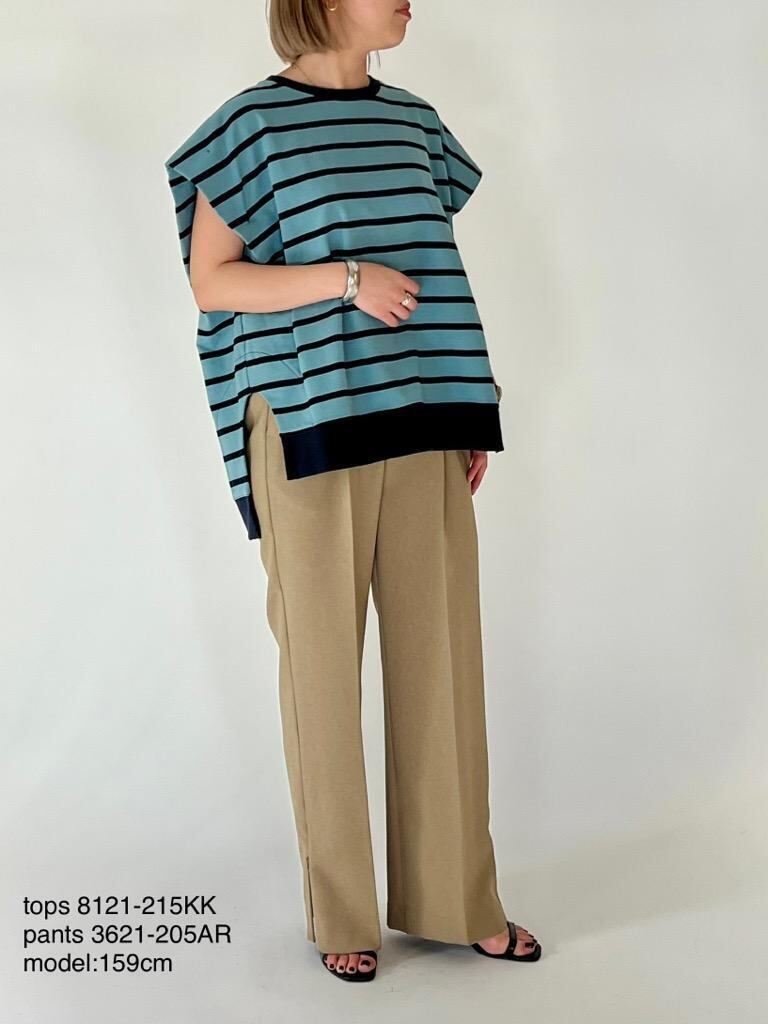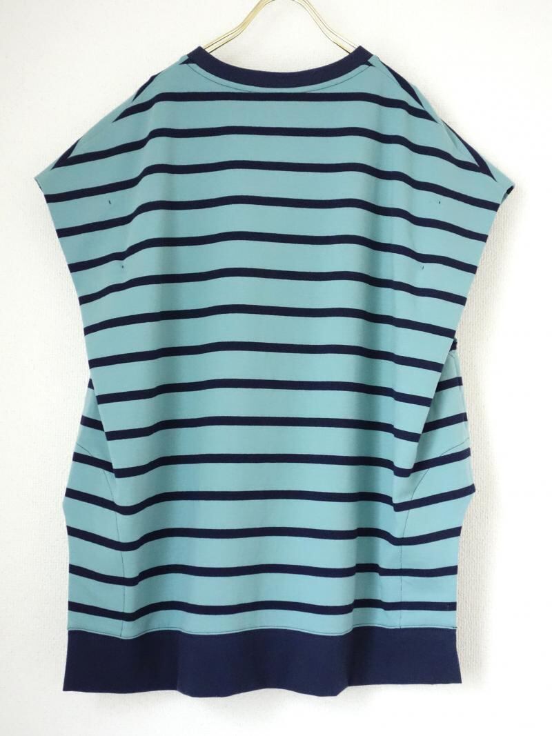 ミニ裏毛のボーダーを使用したトップスです。 ミニ裏毛素材は裏毛のように厚すぎず、天竺のカットソーのように薄すぎない、大人の女性におすすめのカット素材になります。 一見シンプルなオーバーサイズのプルオーバーですが、肩で大きく折り込んだタックデザインや、裾のカーブをきかせたスリットデザインなど、ポイントのディテールがつまった1枚です。春夏に重宝するボーダーアイテムです。