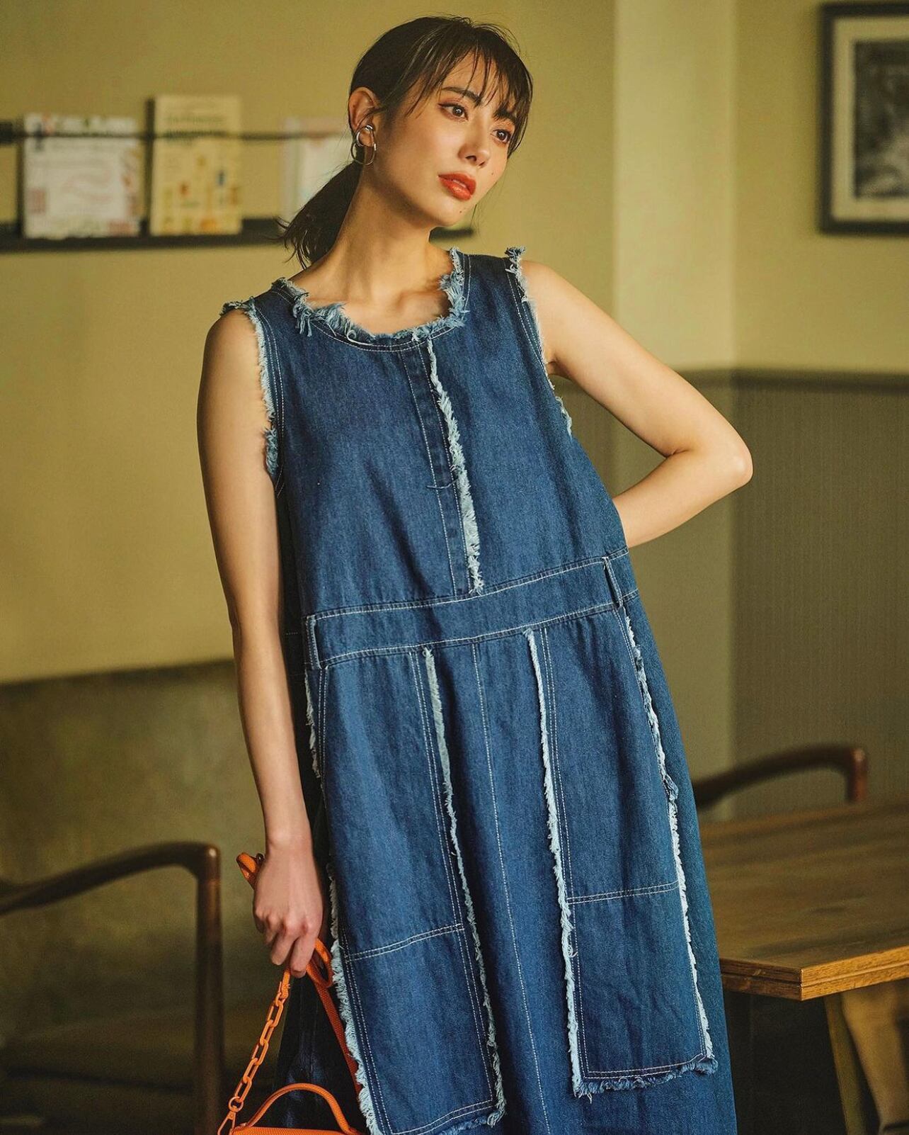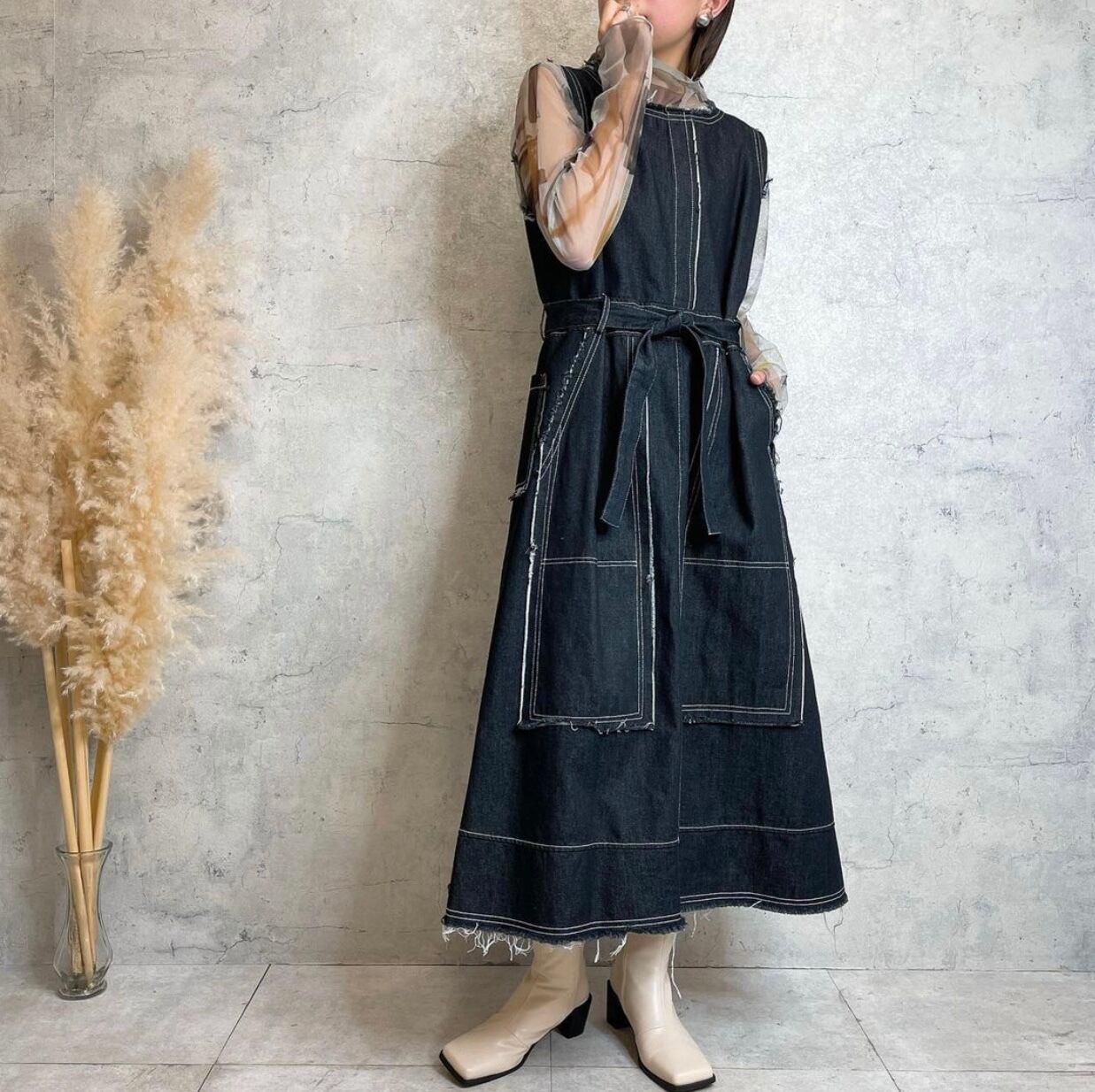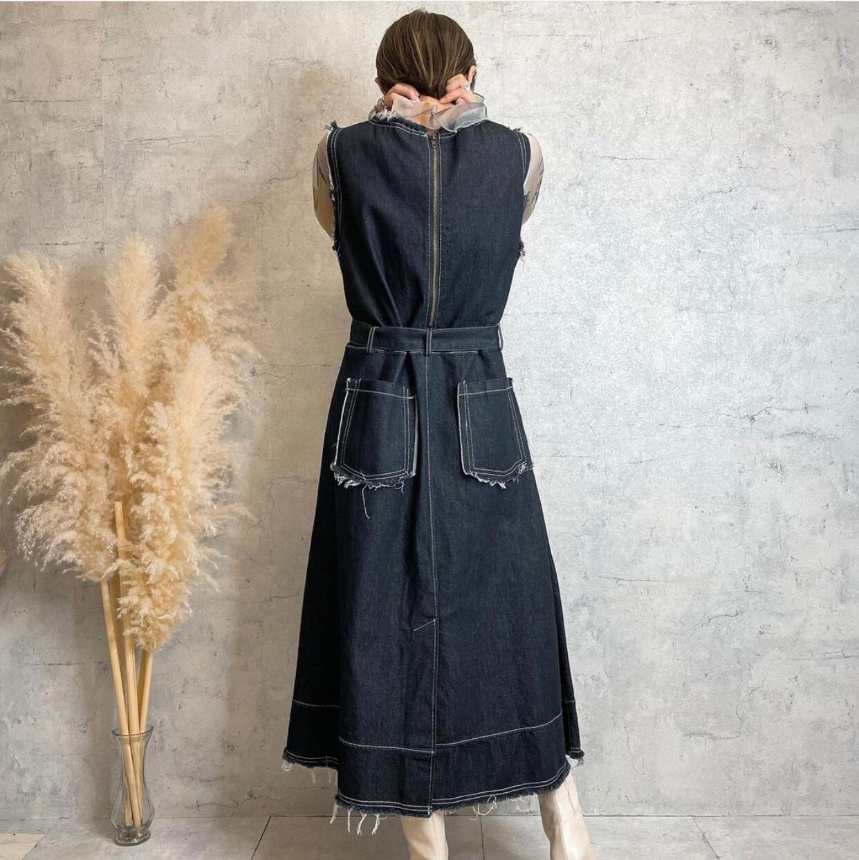 デニム カットオフ ワンピース