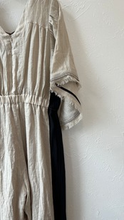 柔らかなリネンにリネンタッチのシフォンを掛け合わせたオールインワン。